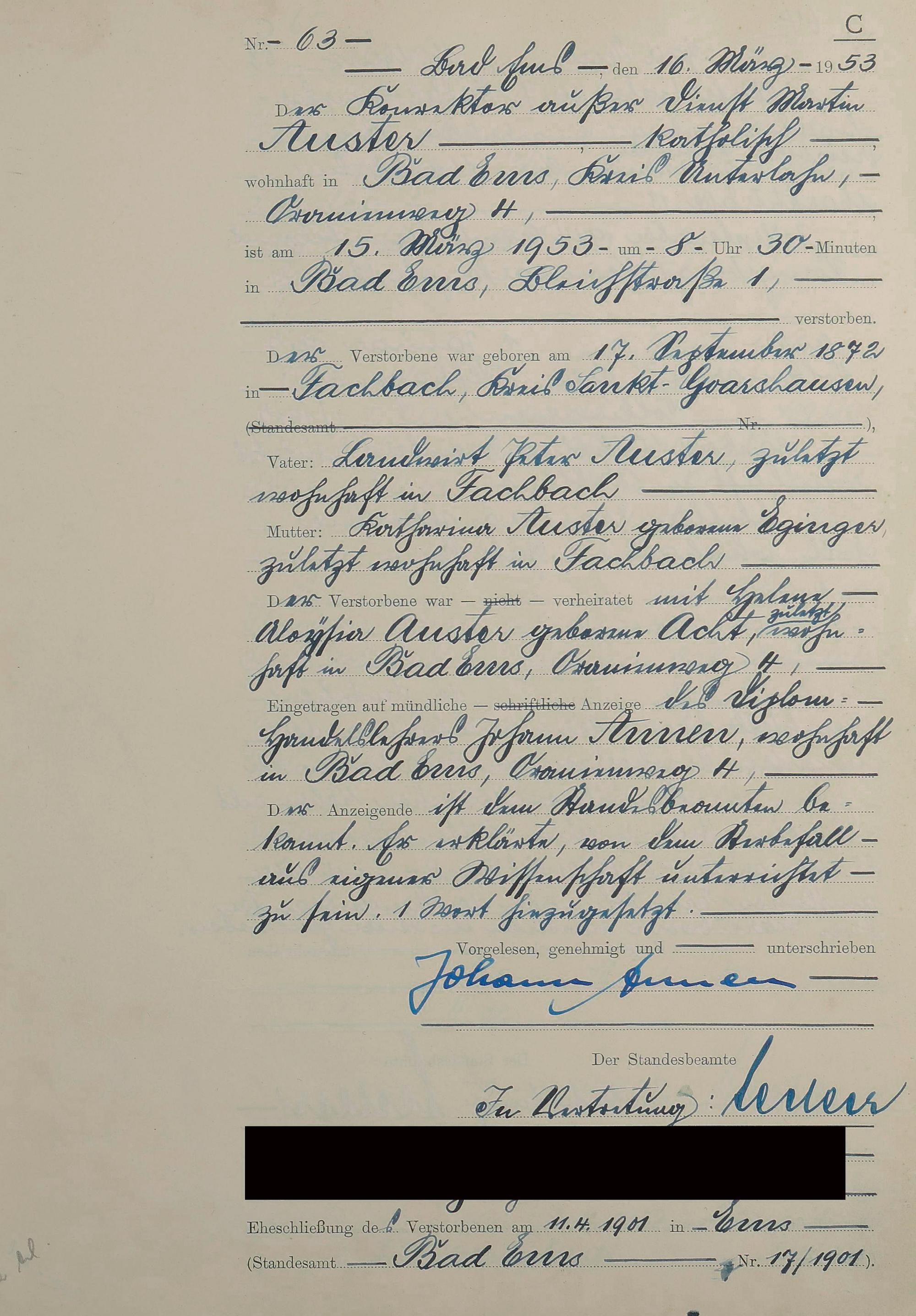 1529: Sterberegister 1953