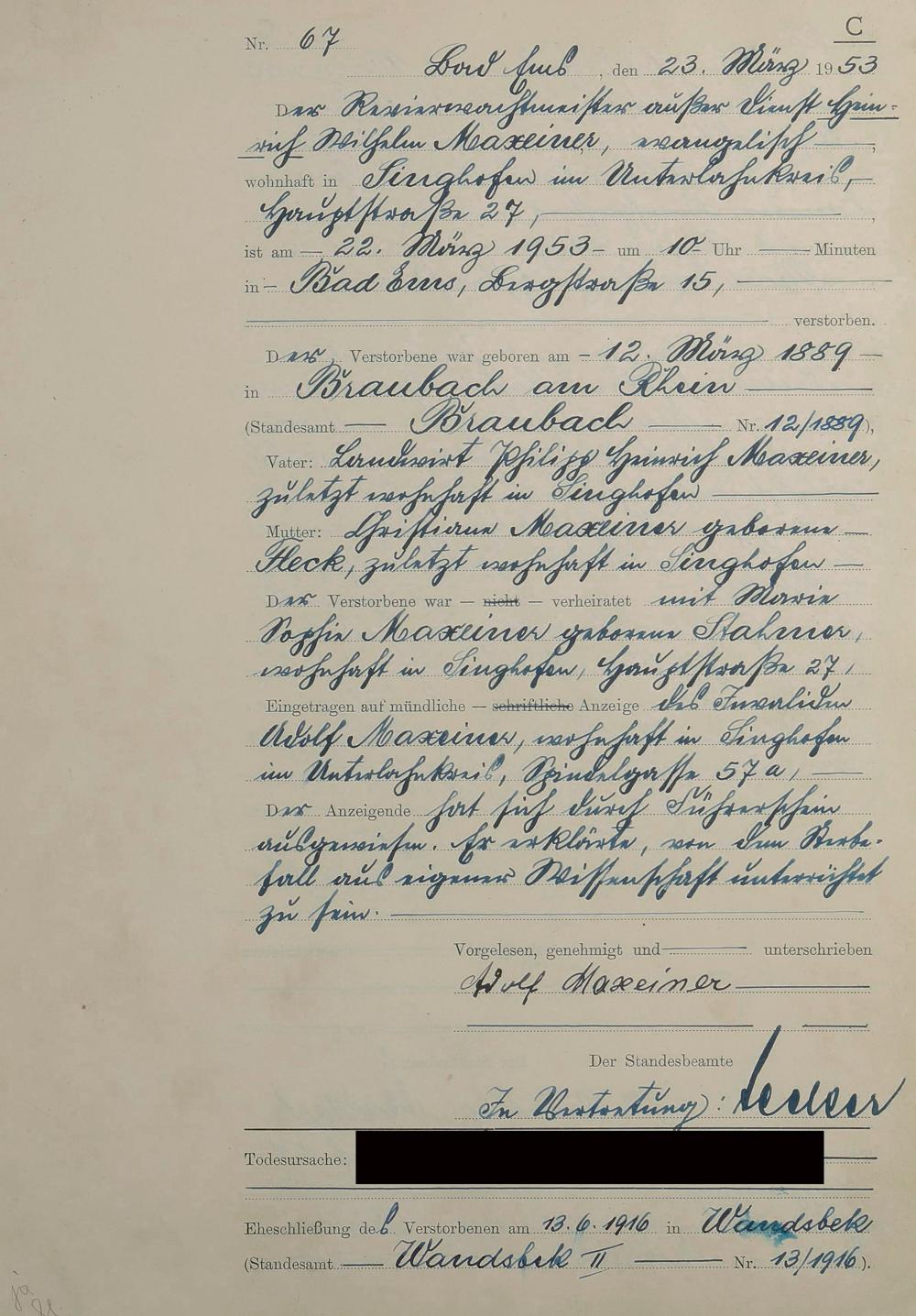 Sterberegister 1953