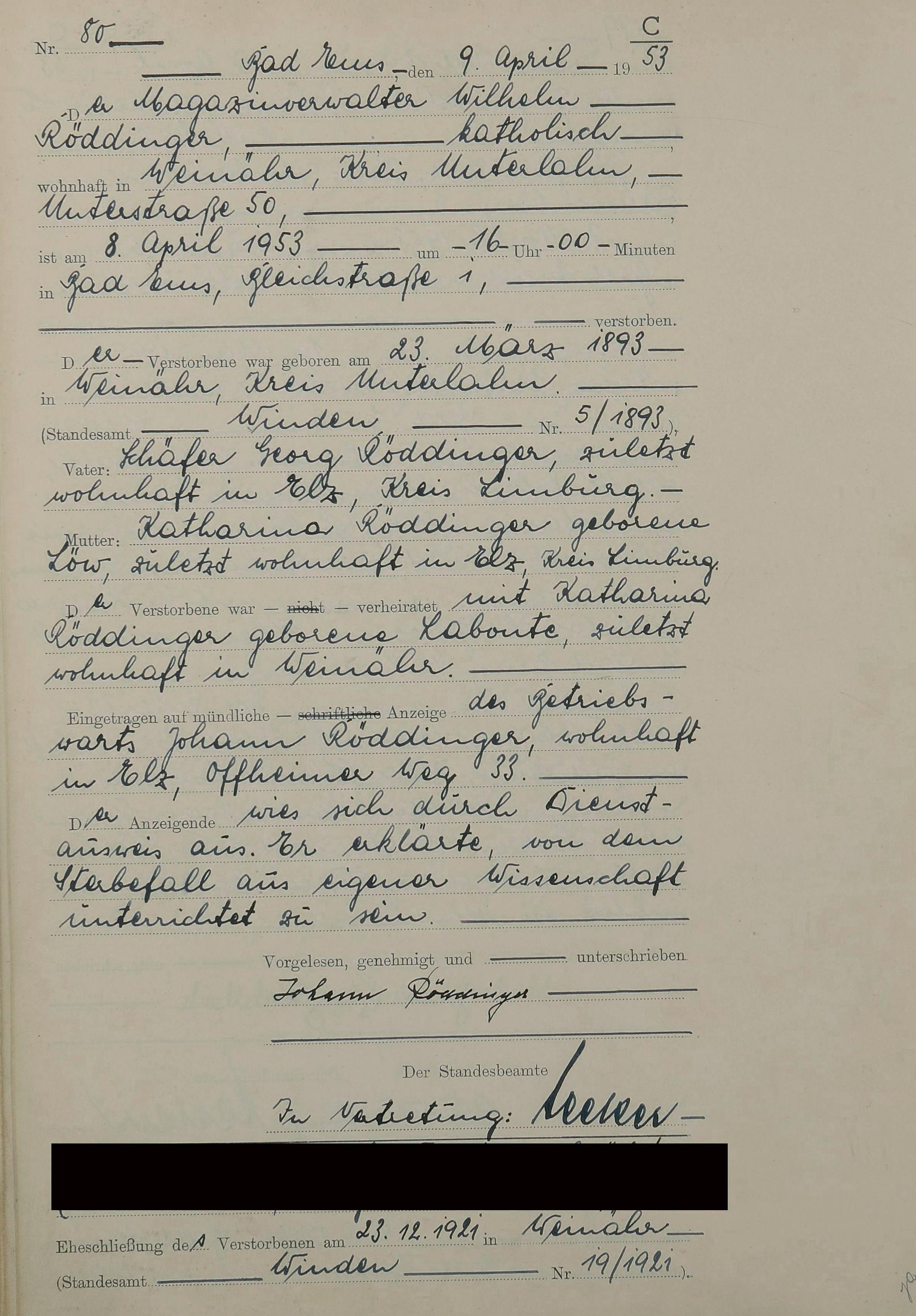 1529: Sterberegister 1953