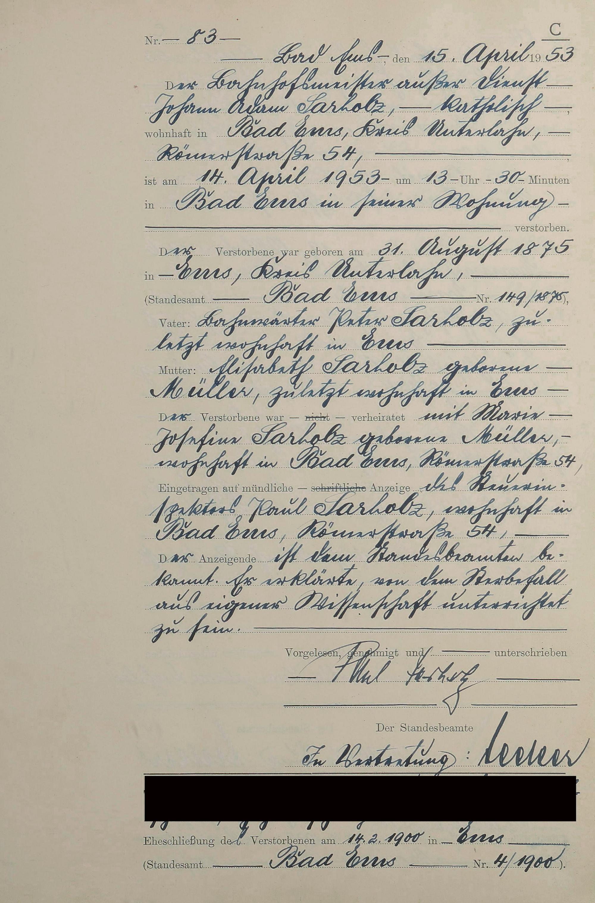 1529: Sterberegister 1953
