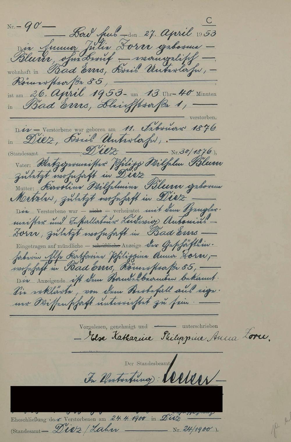 1529: Sterberegister 1953