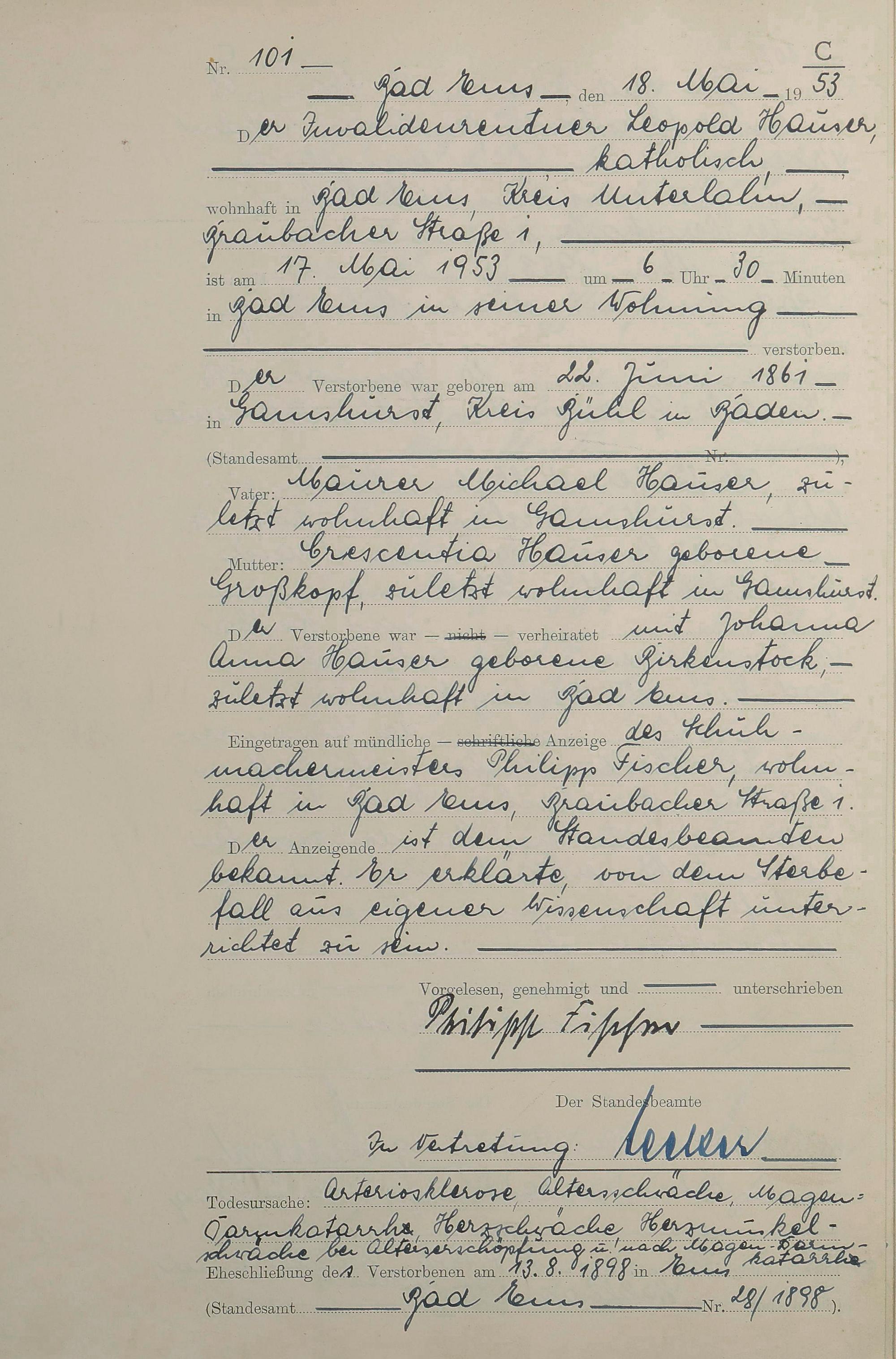 1529: Sterberegister 1953