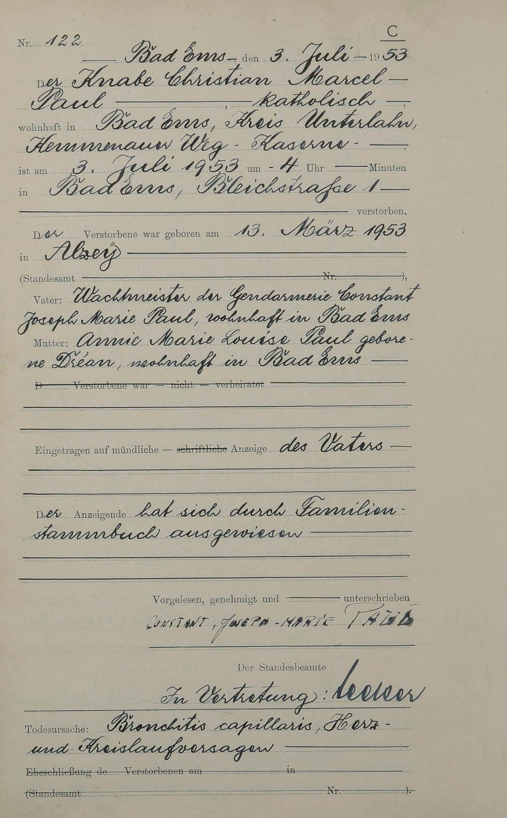 Sterberegister 1953
