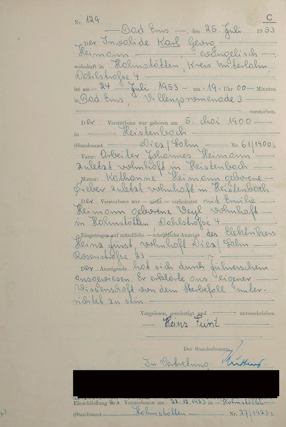 1529: Sterberegister 1953