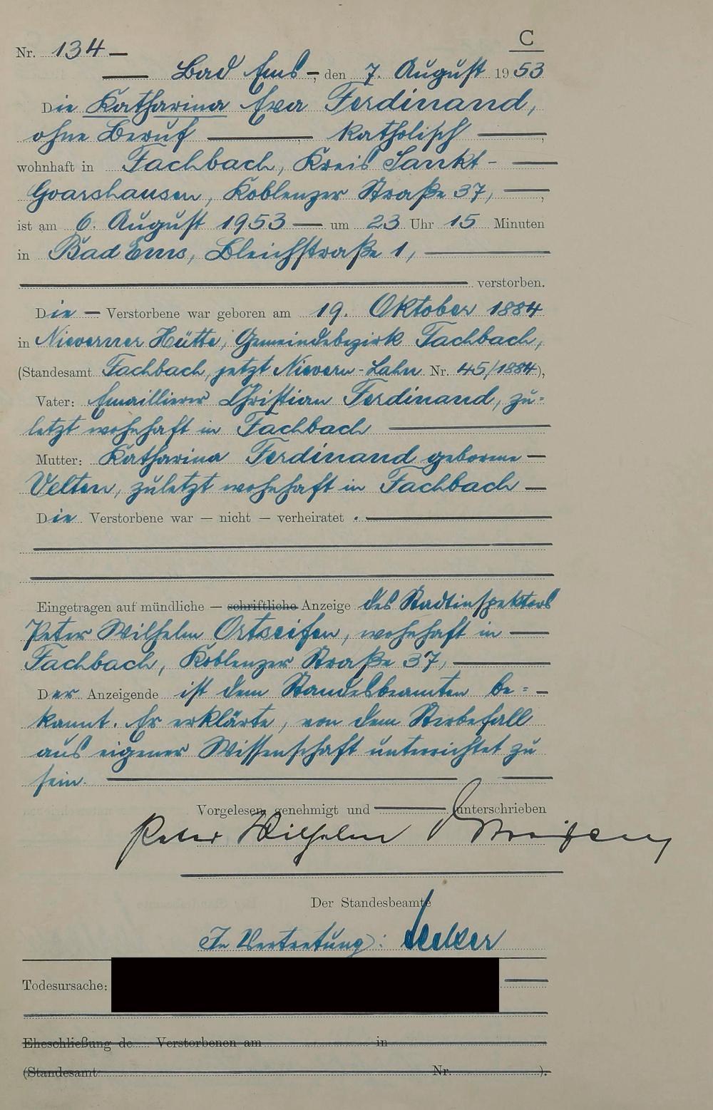 Sterberegister 1953