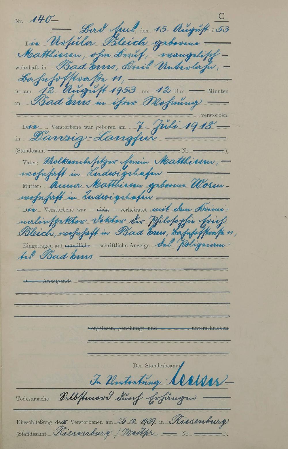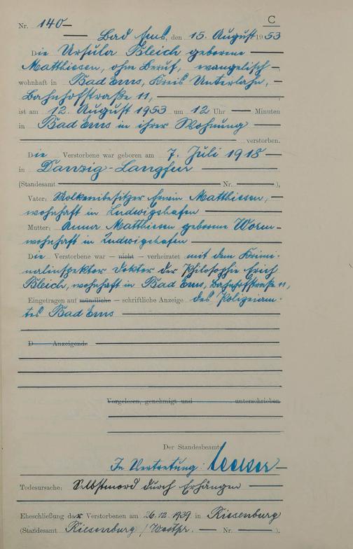 Sterberegister 1953