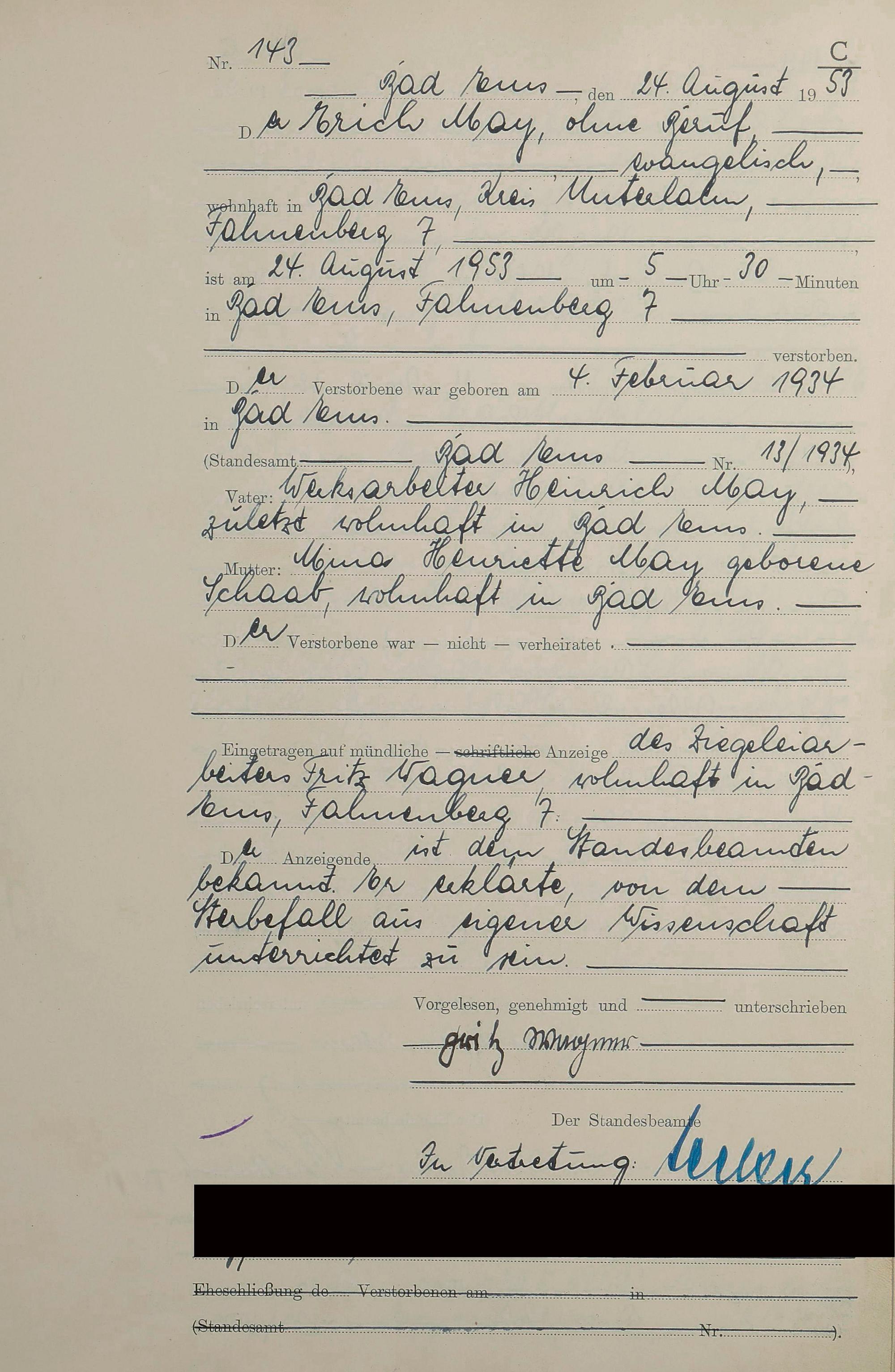 1529: Sterberegister 1953