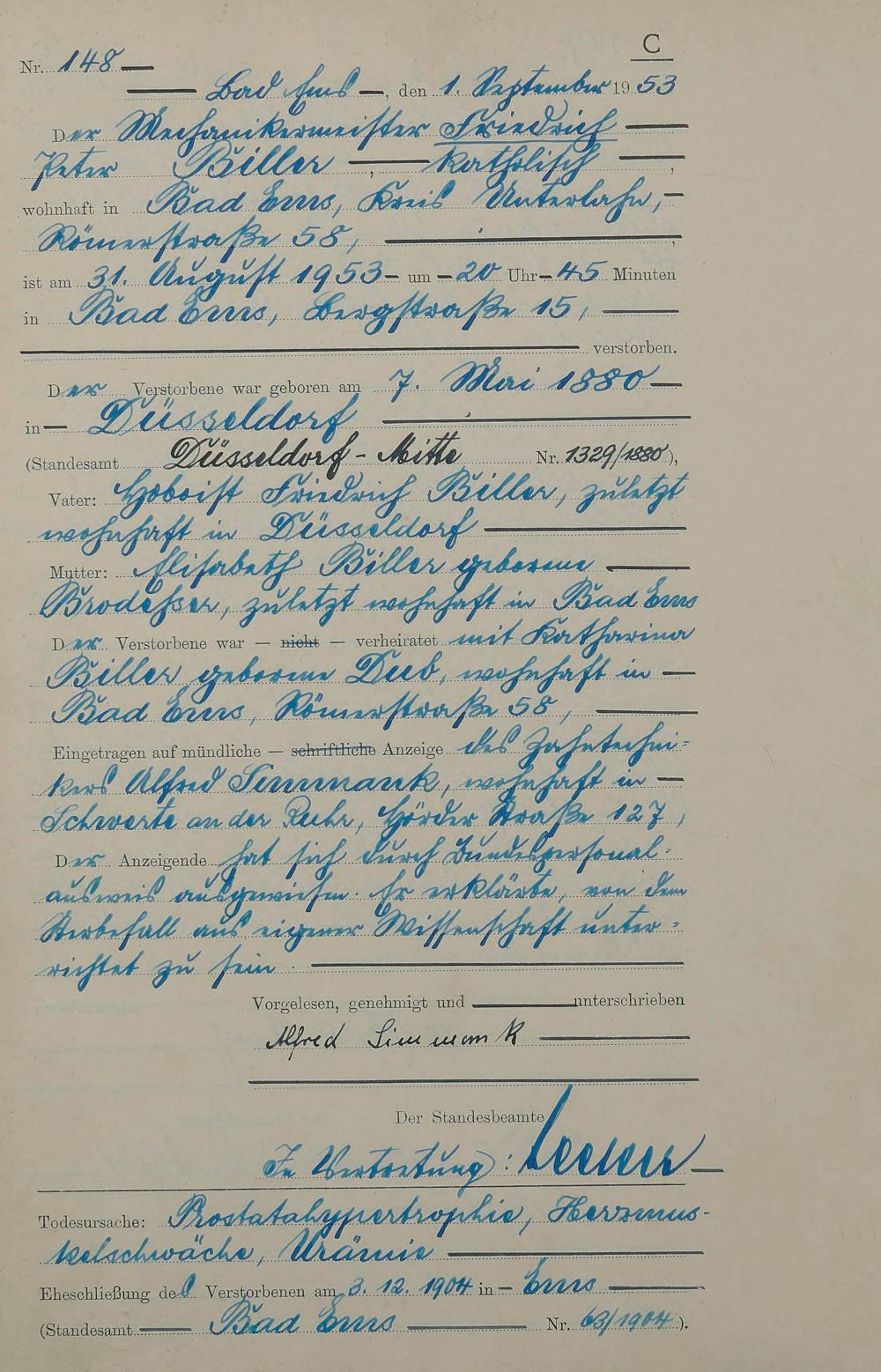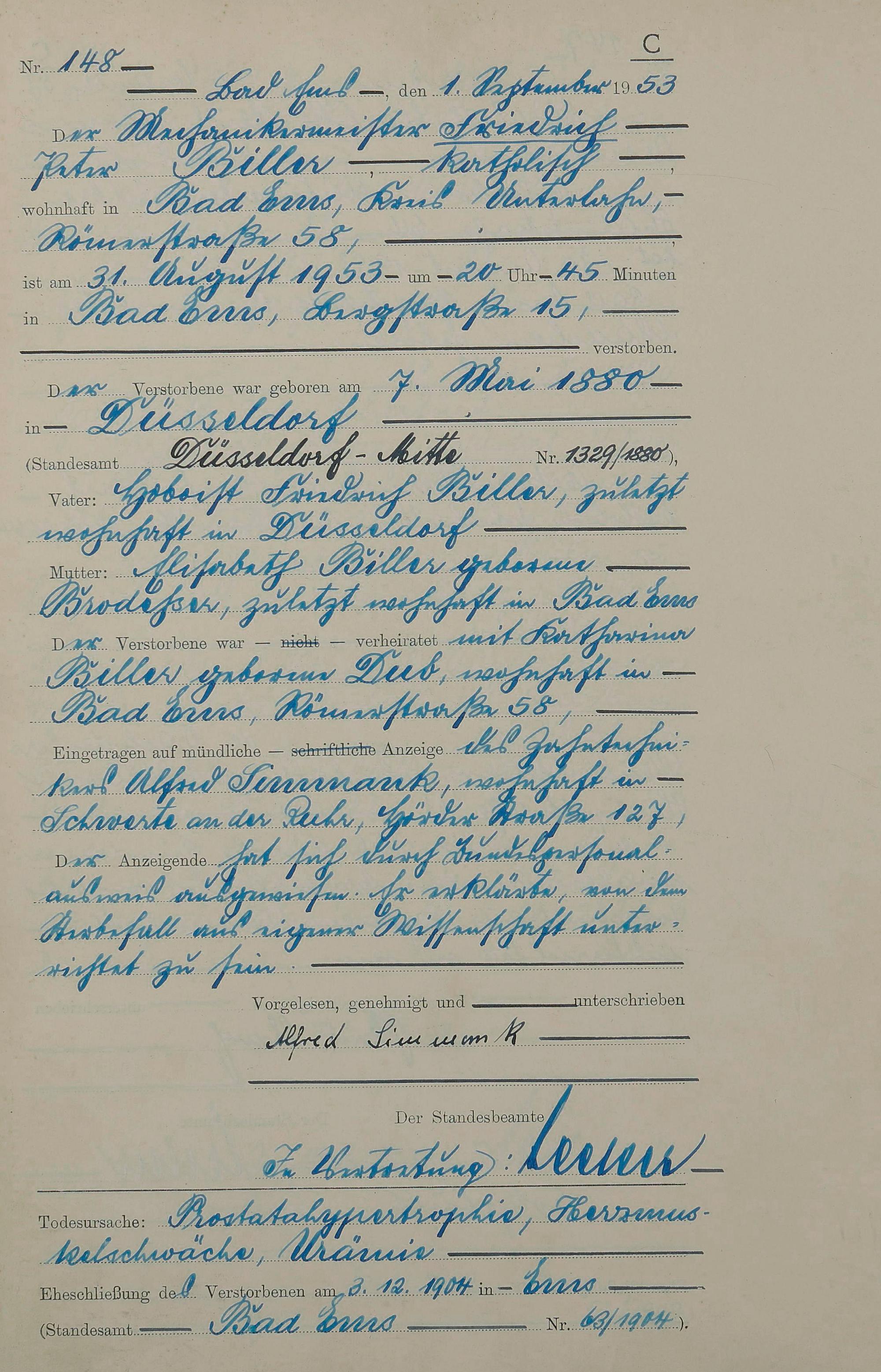 Sterberegister 1953