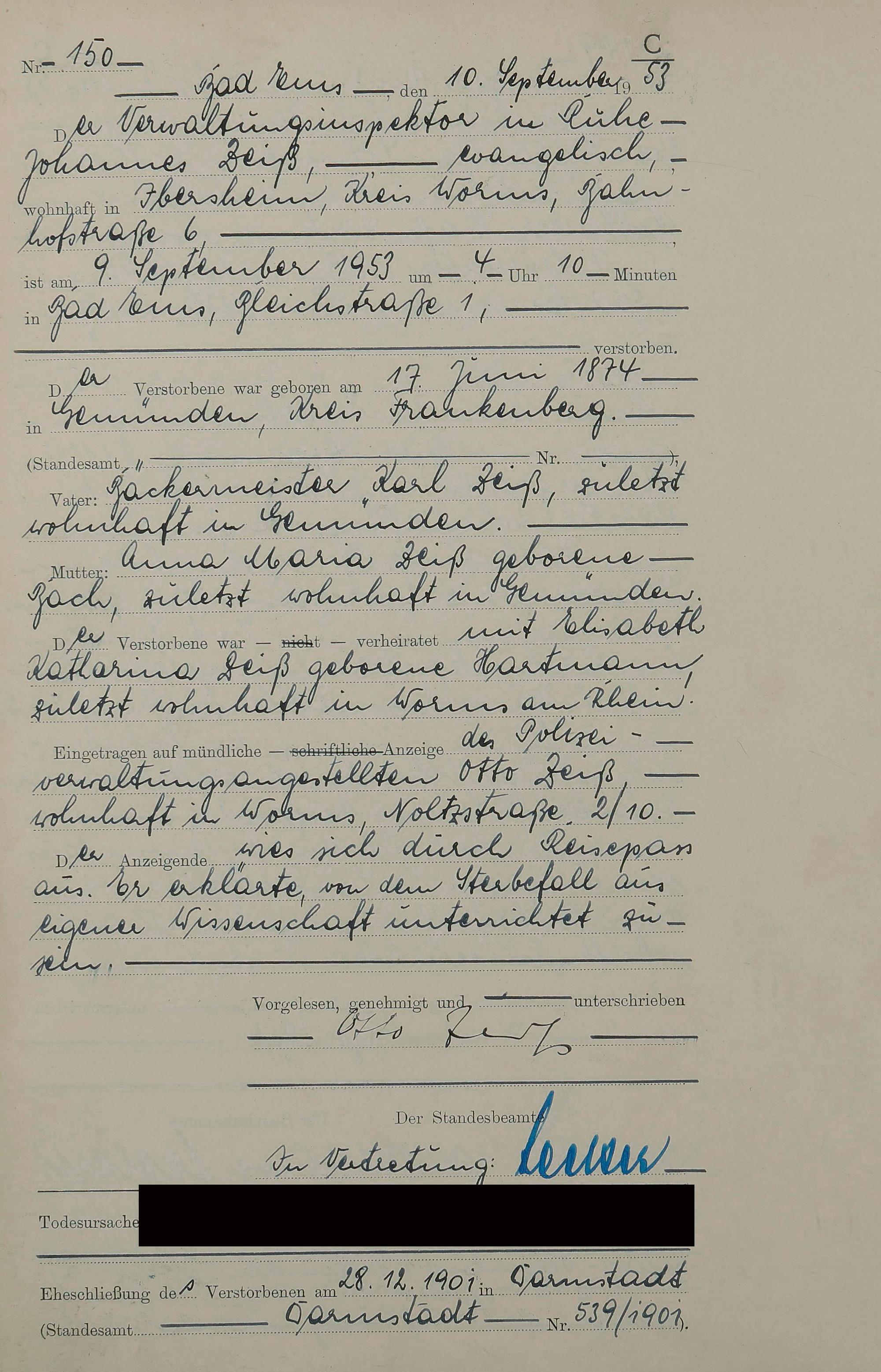 1529: Sterberegister 1953