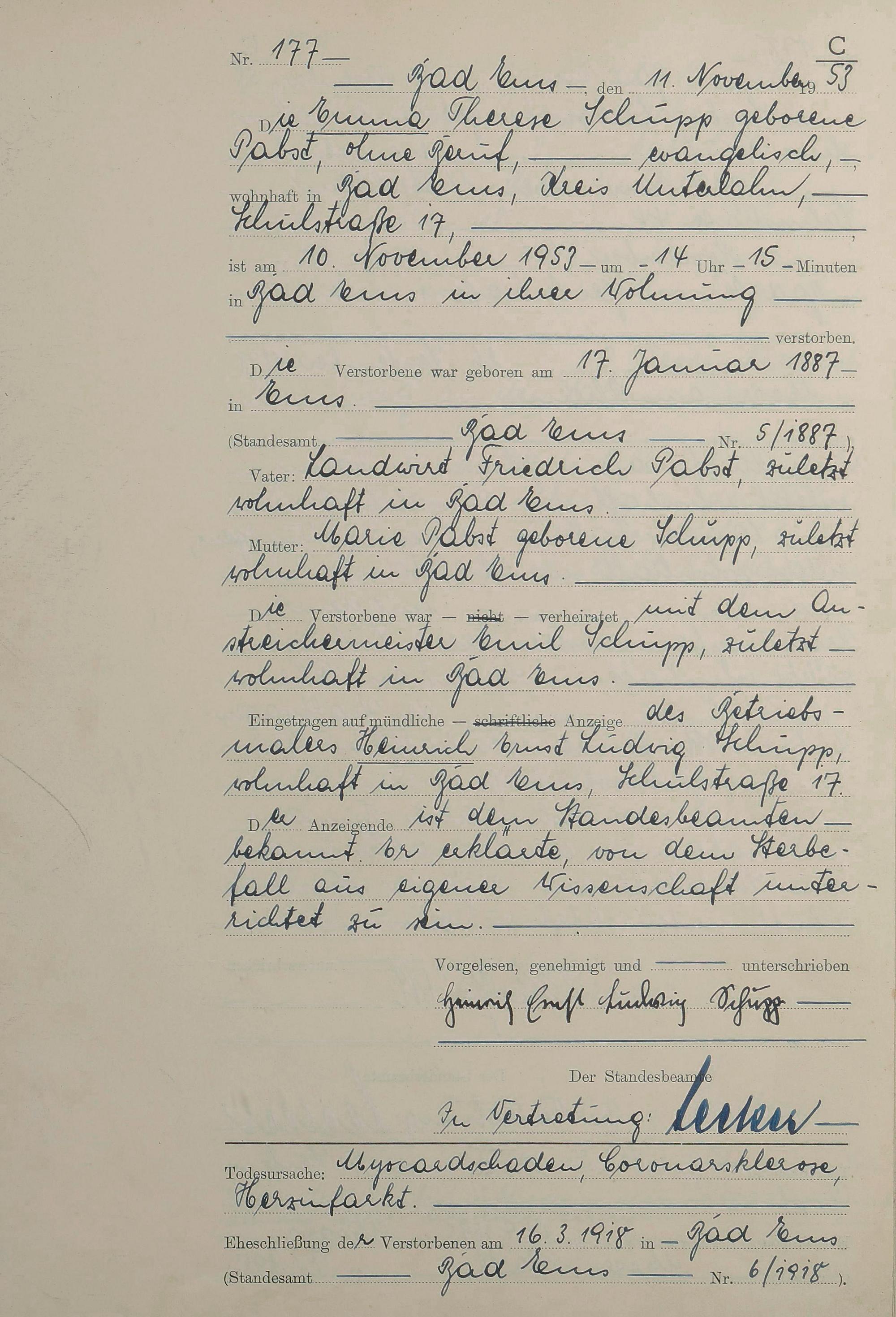 Sterberegister 1953