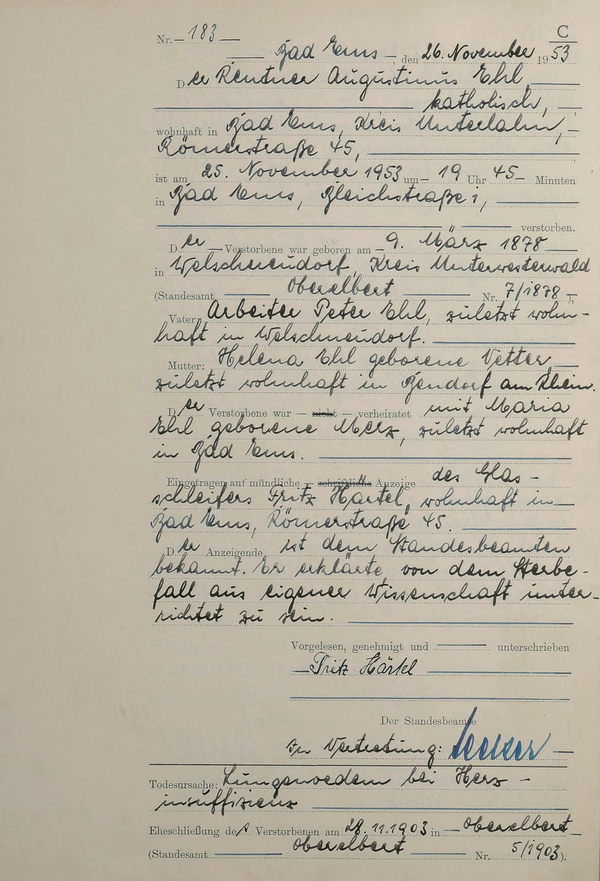 1529: Sterberegister 1953