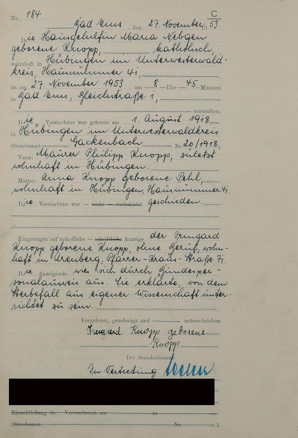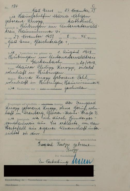 1529: Sterberegister 1953