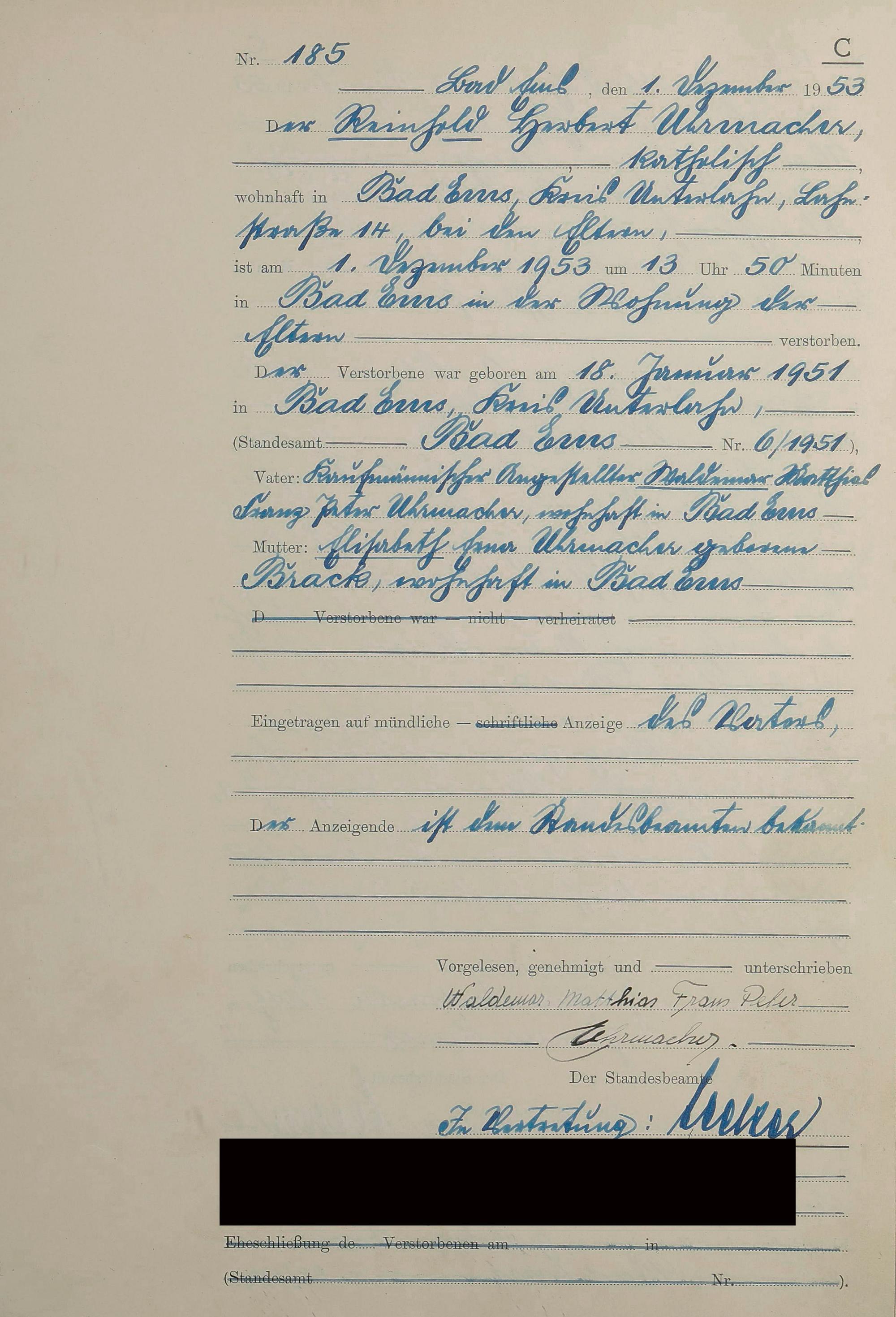 1529: Sterberegister 1953