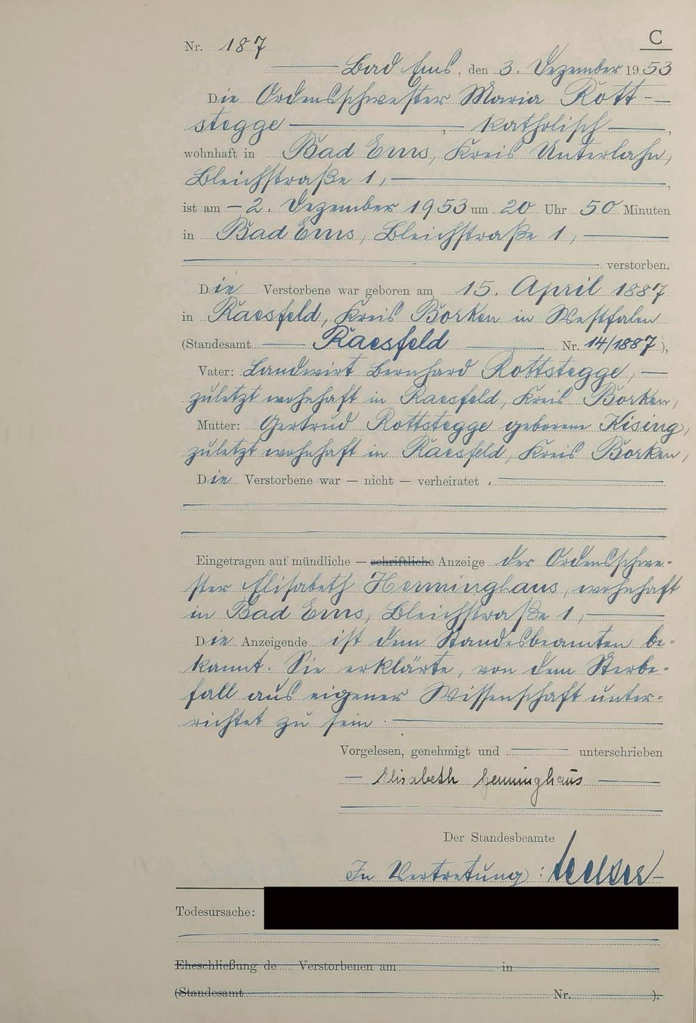 Sterberegister 1953