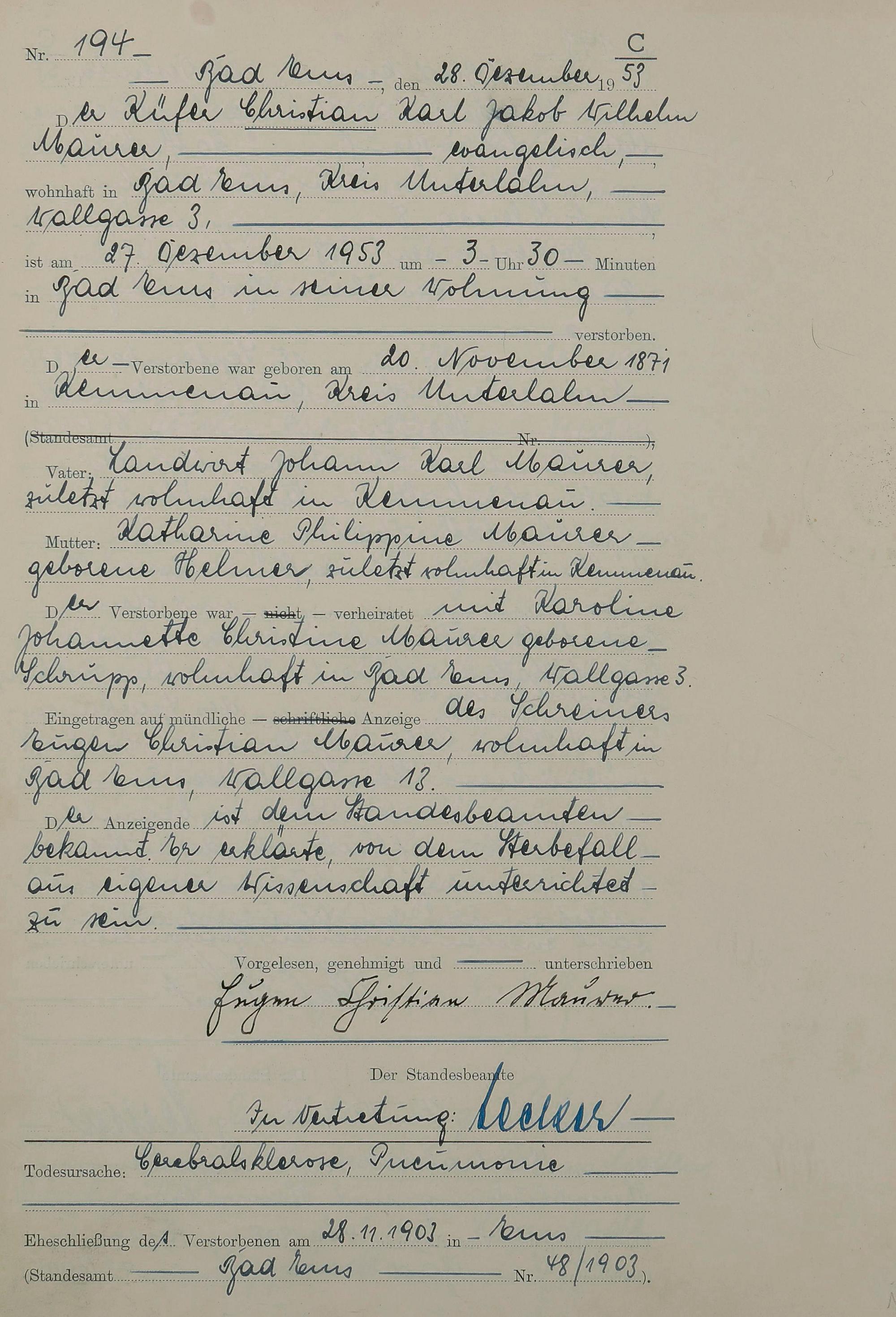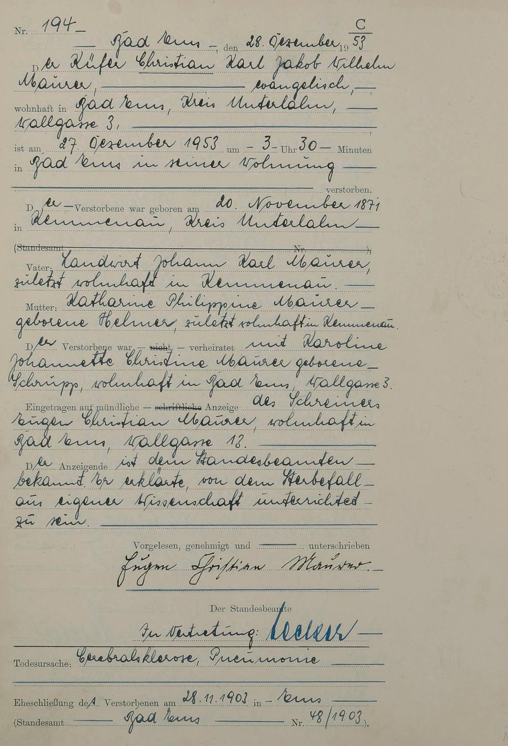 1529: Sterberegister 1953
