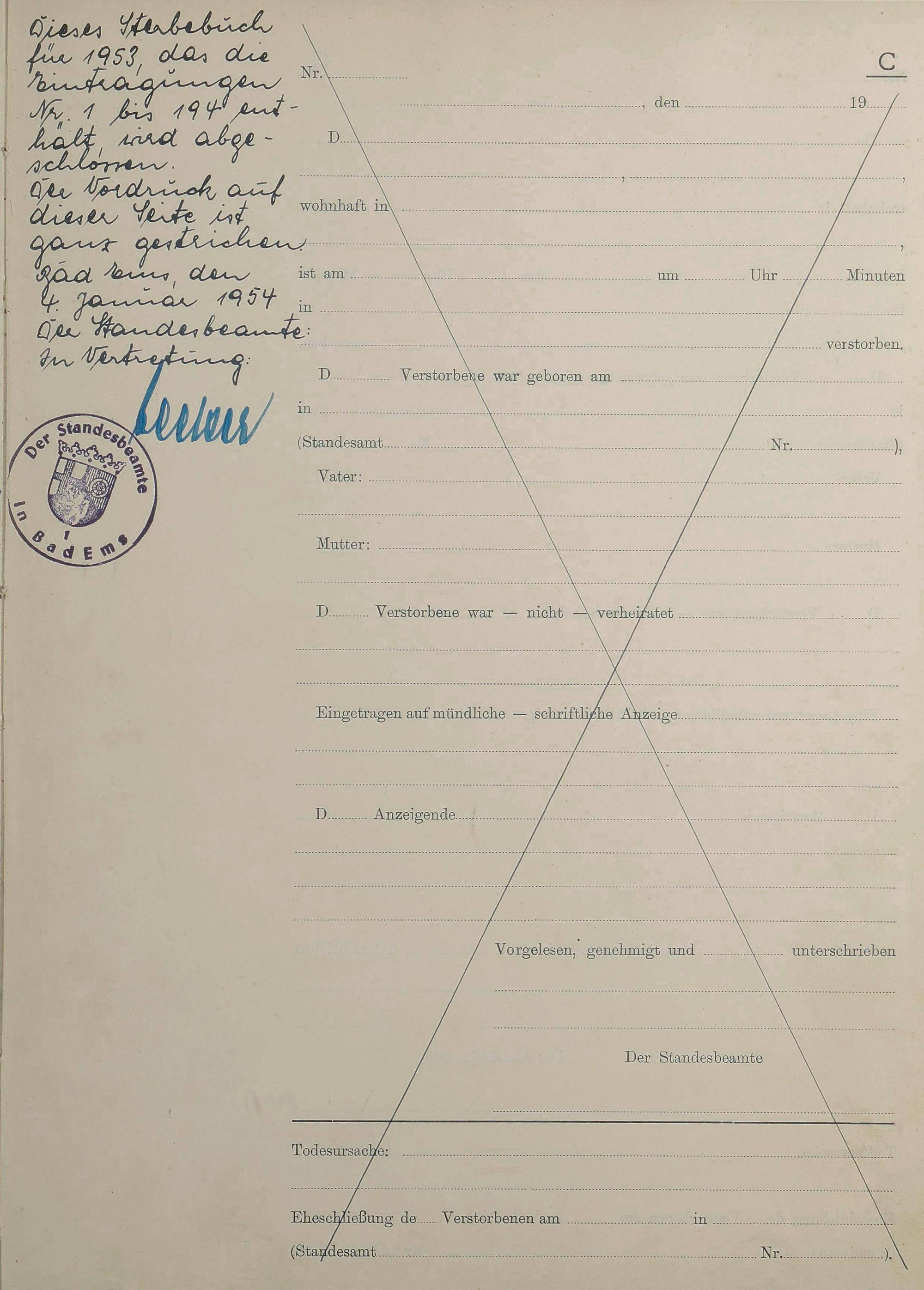 Sterberegister 1953