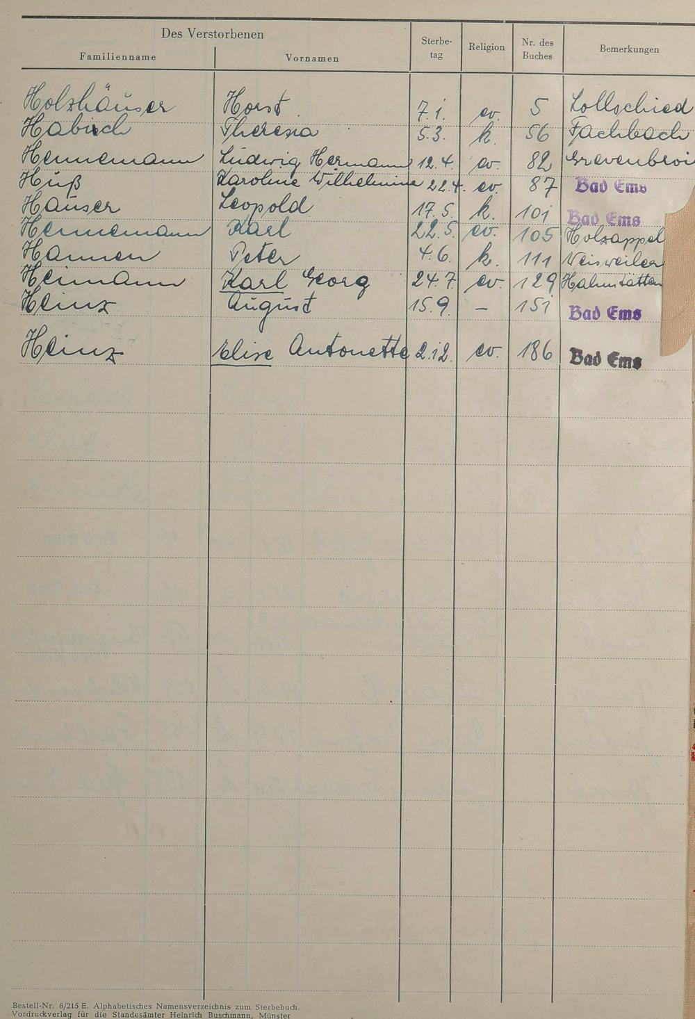 1529: Sterberegister 1953