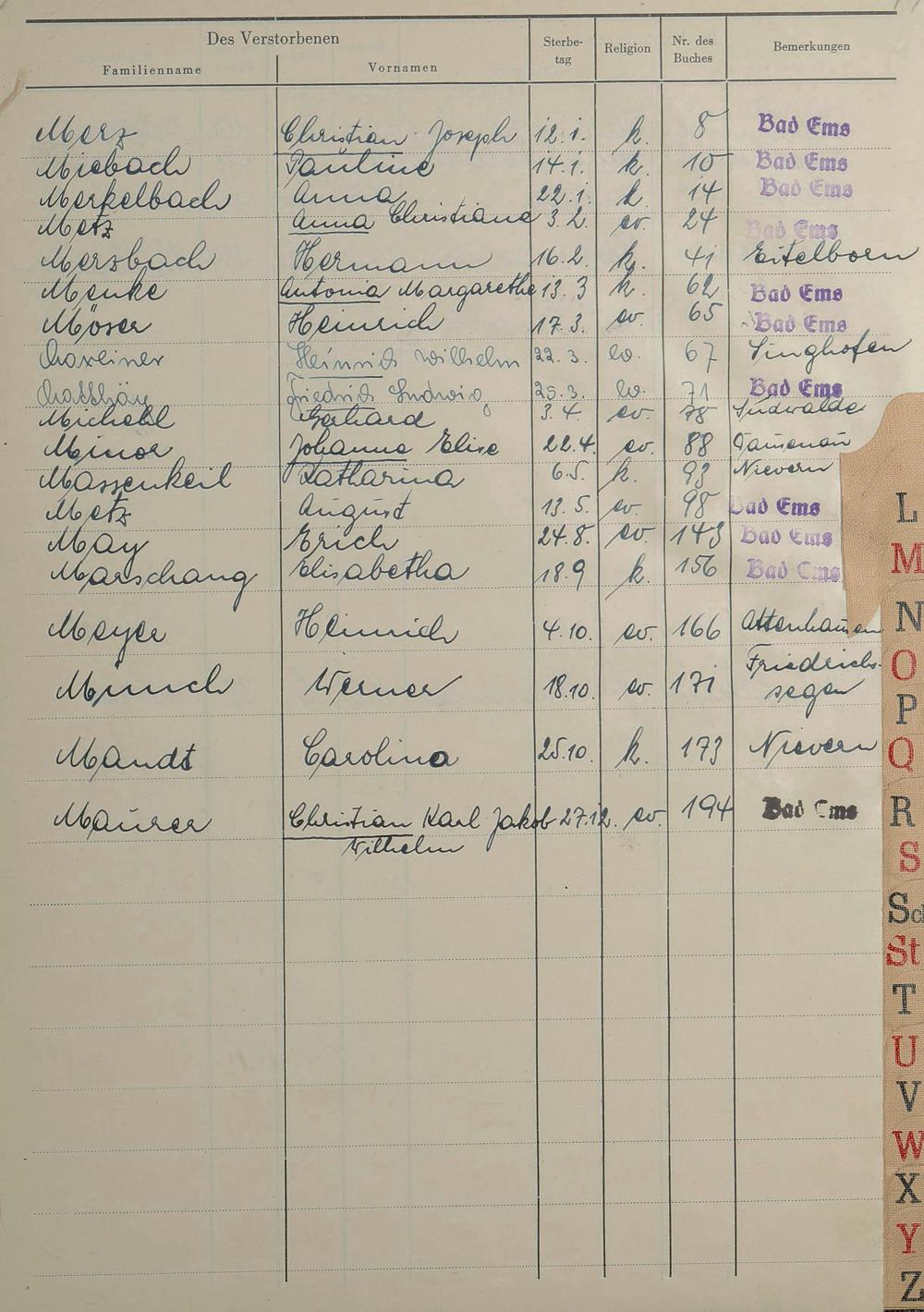 1529: Sterberegister 1953