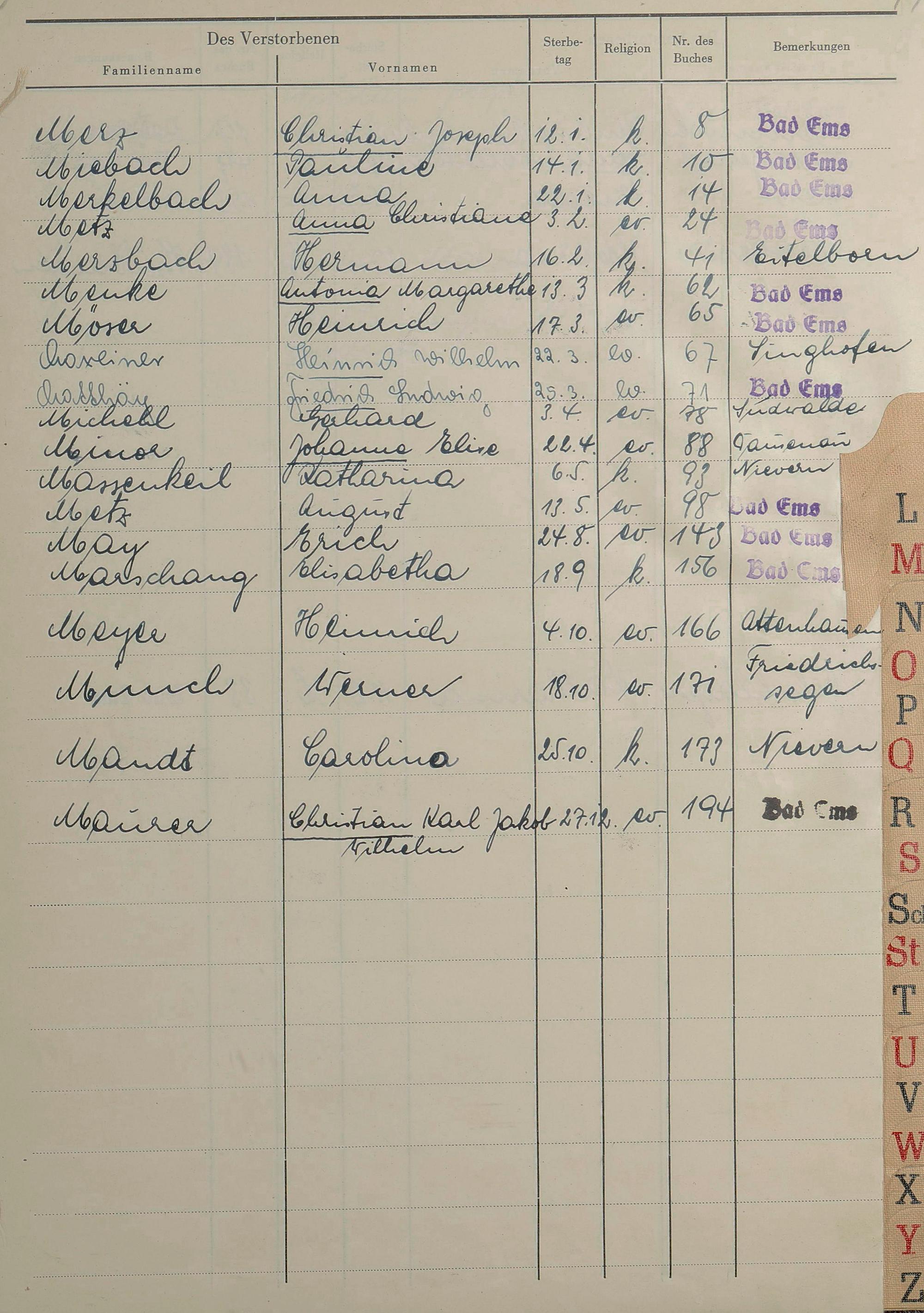 Sterberegister 1953