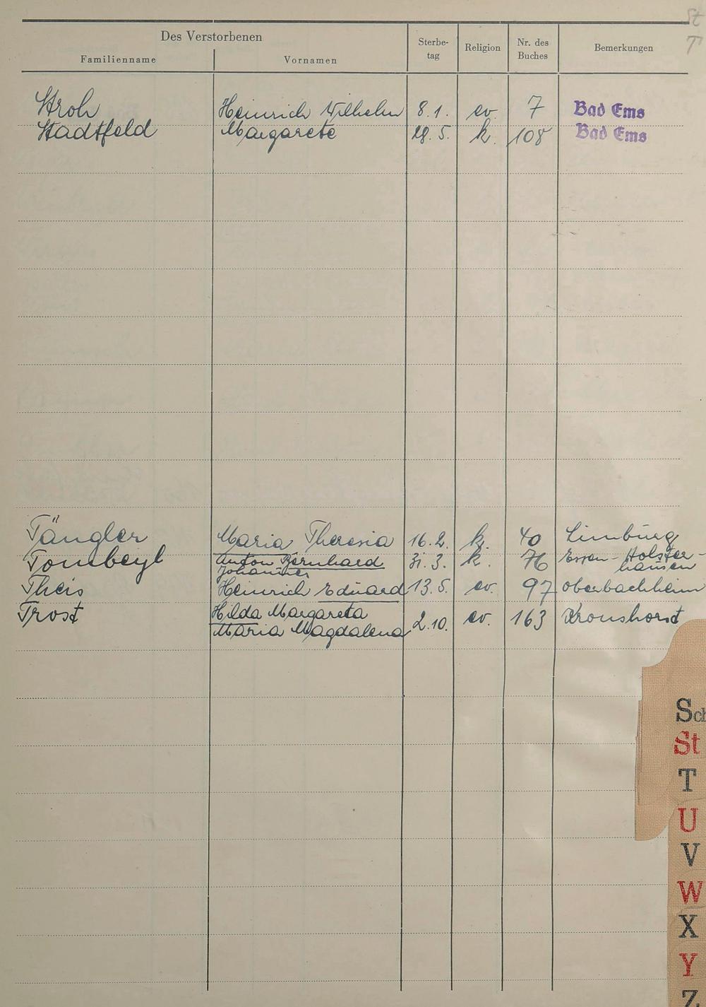 1529: Sterberegister 1953