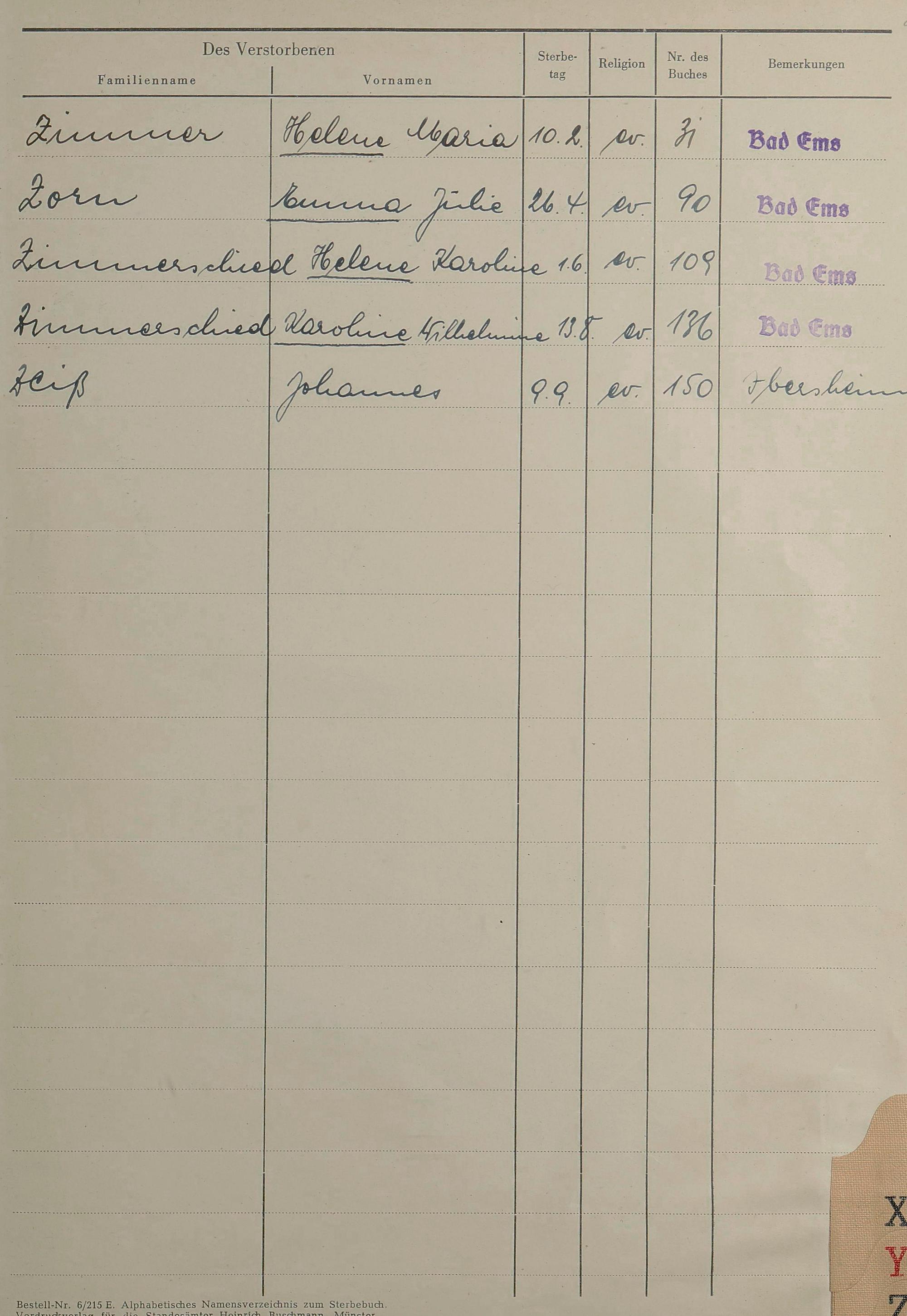 Sterberegister 1953