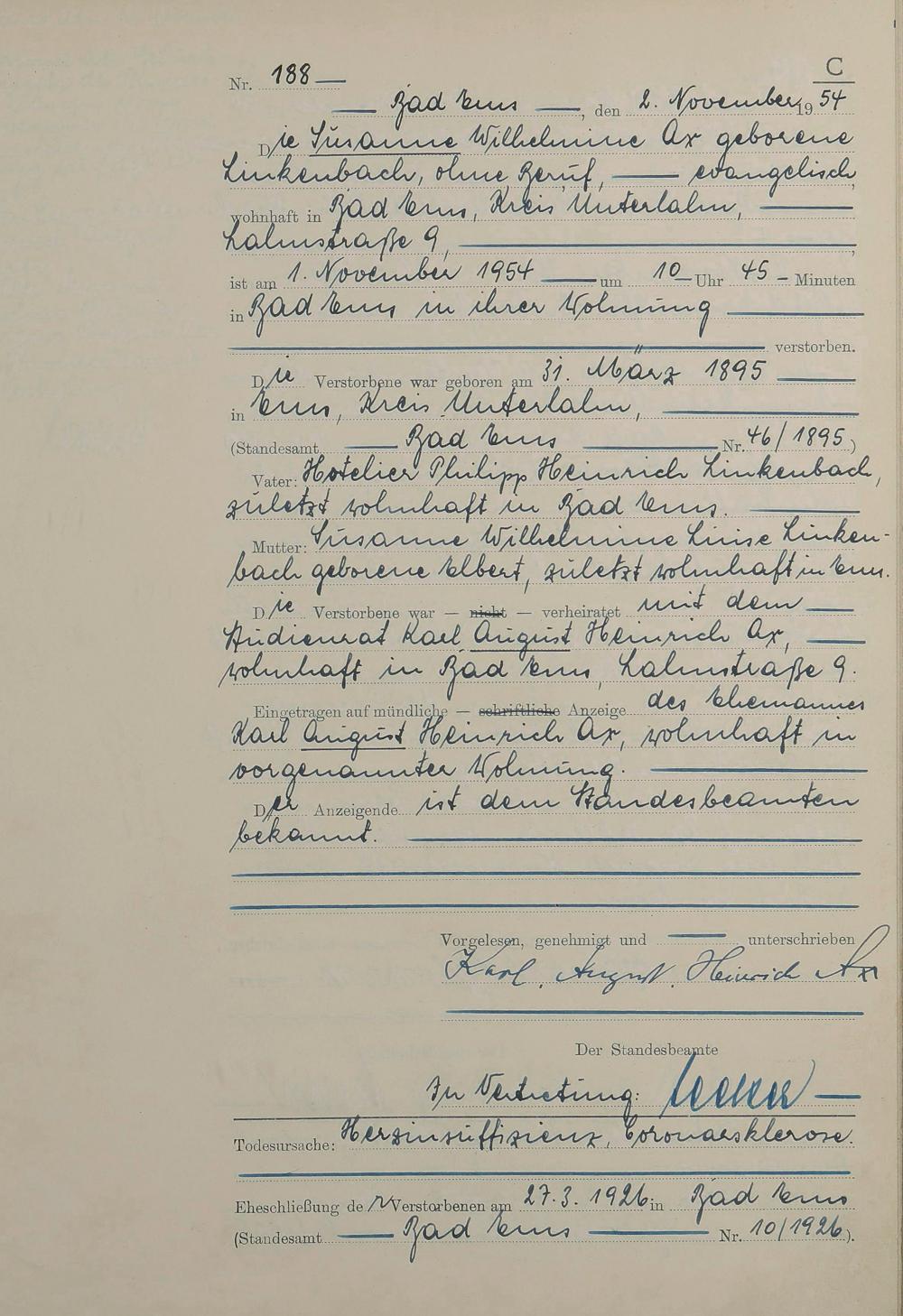 Sterberegister 1954