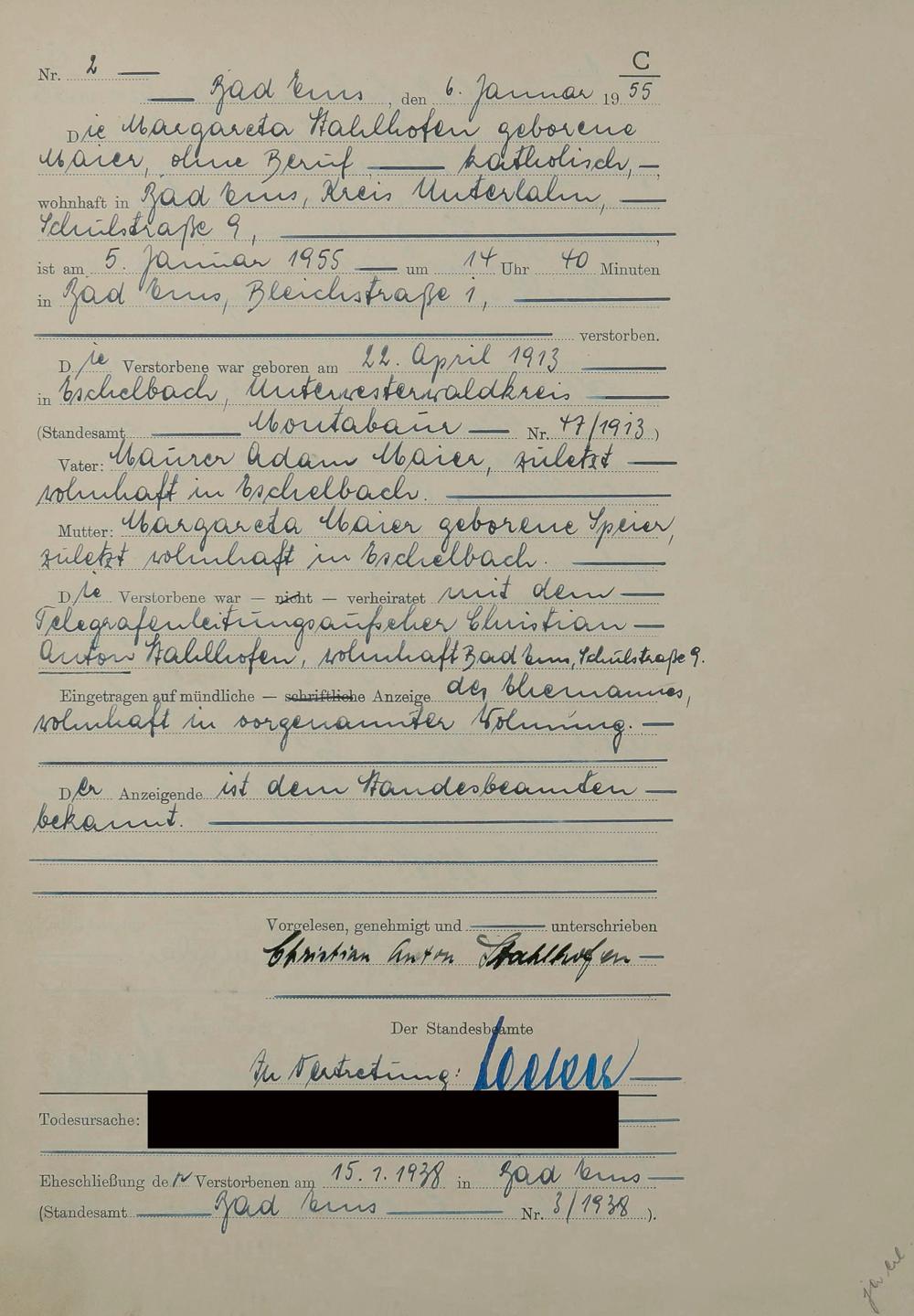 1531: Sterberegister 1955