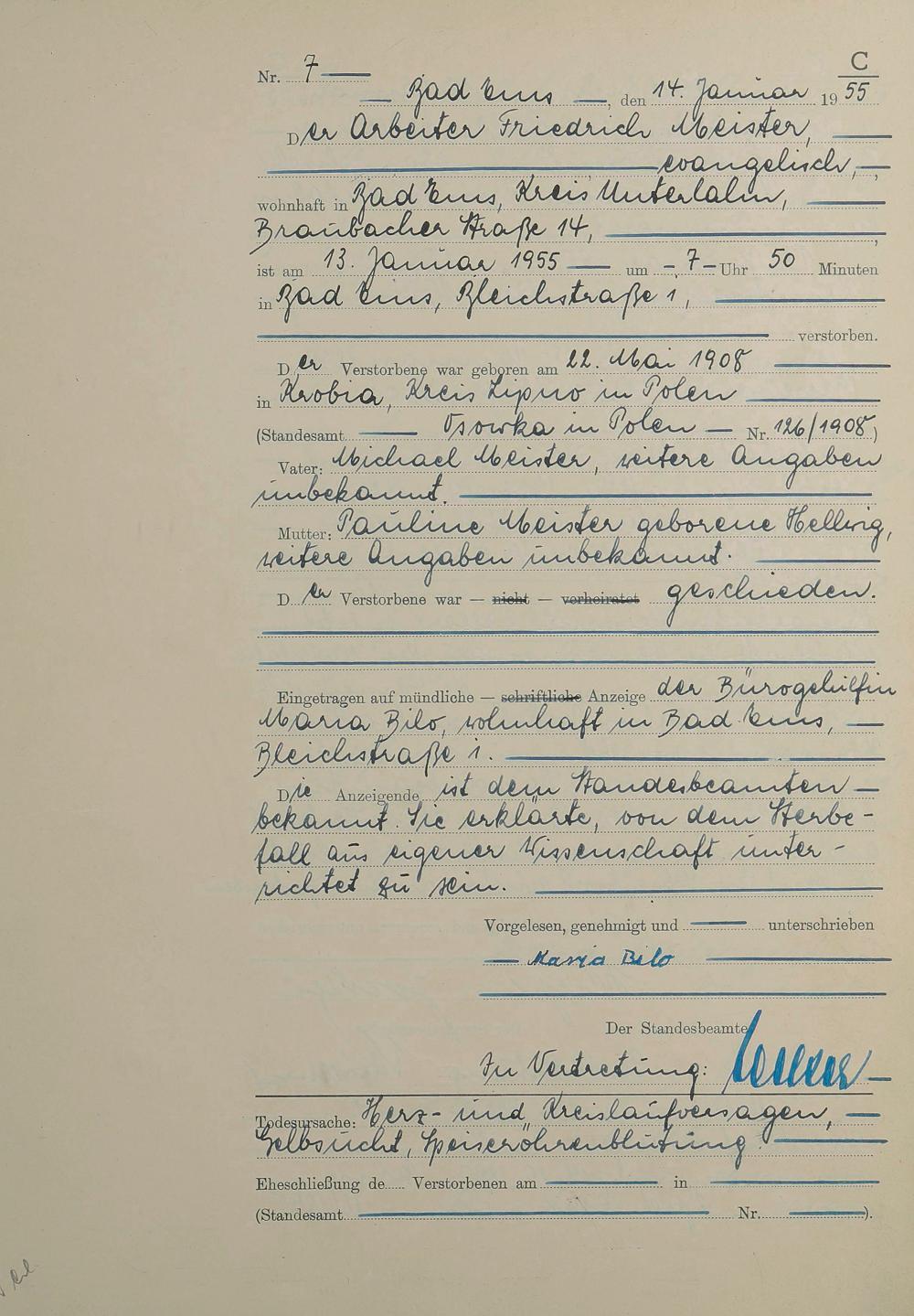 1531: Sterberegister 1955
