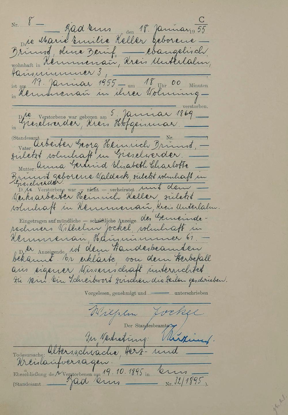 Sterberegister 1955