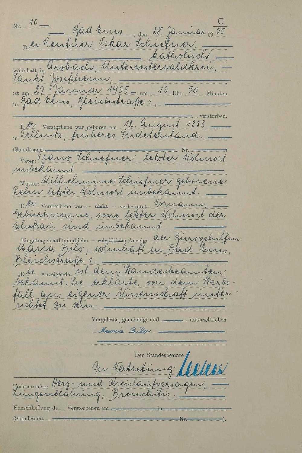 1531: Sterberegister 1955
