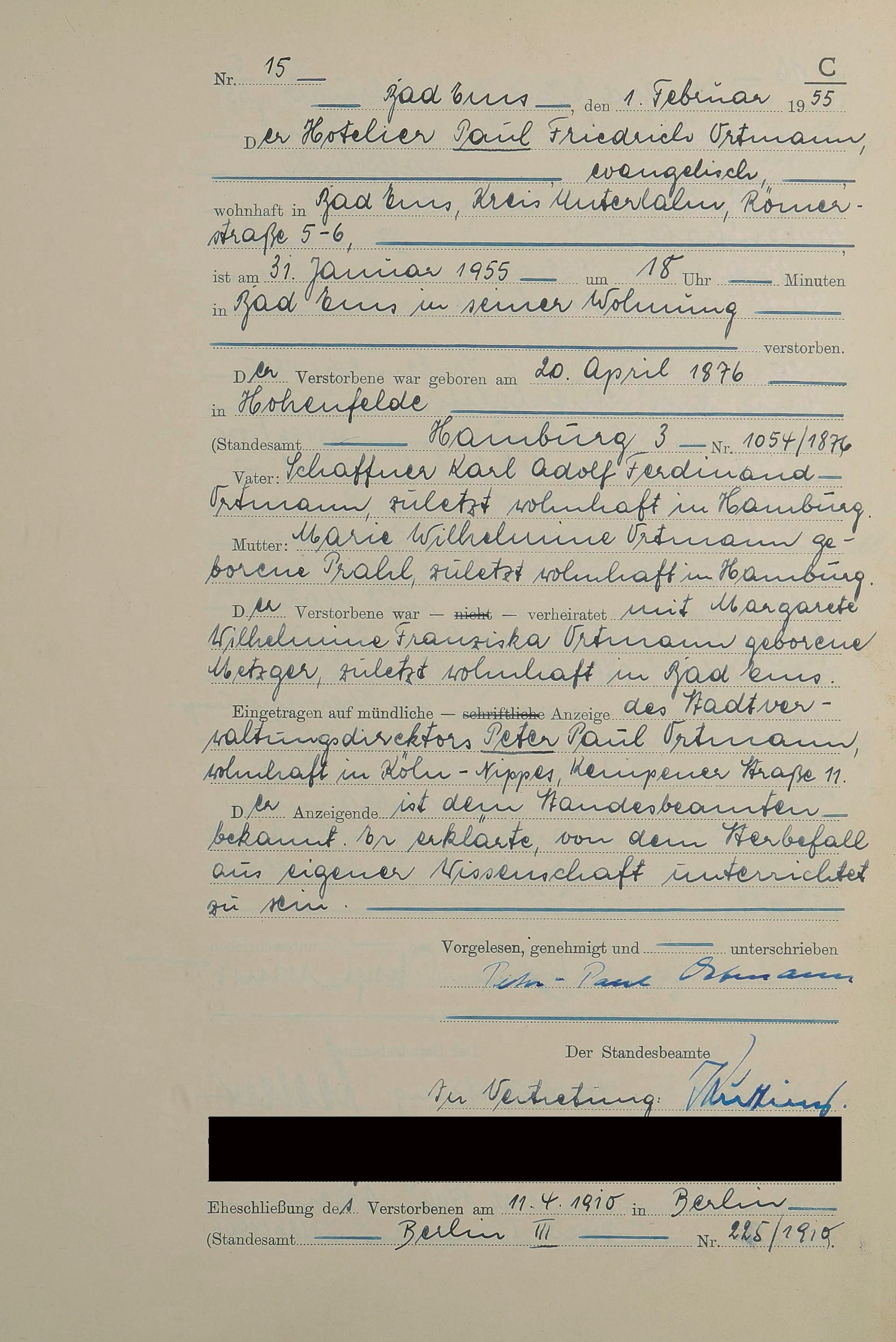 1531: Sterberegister 1955
