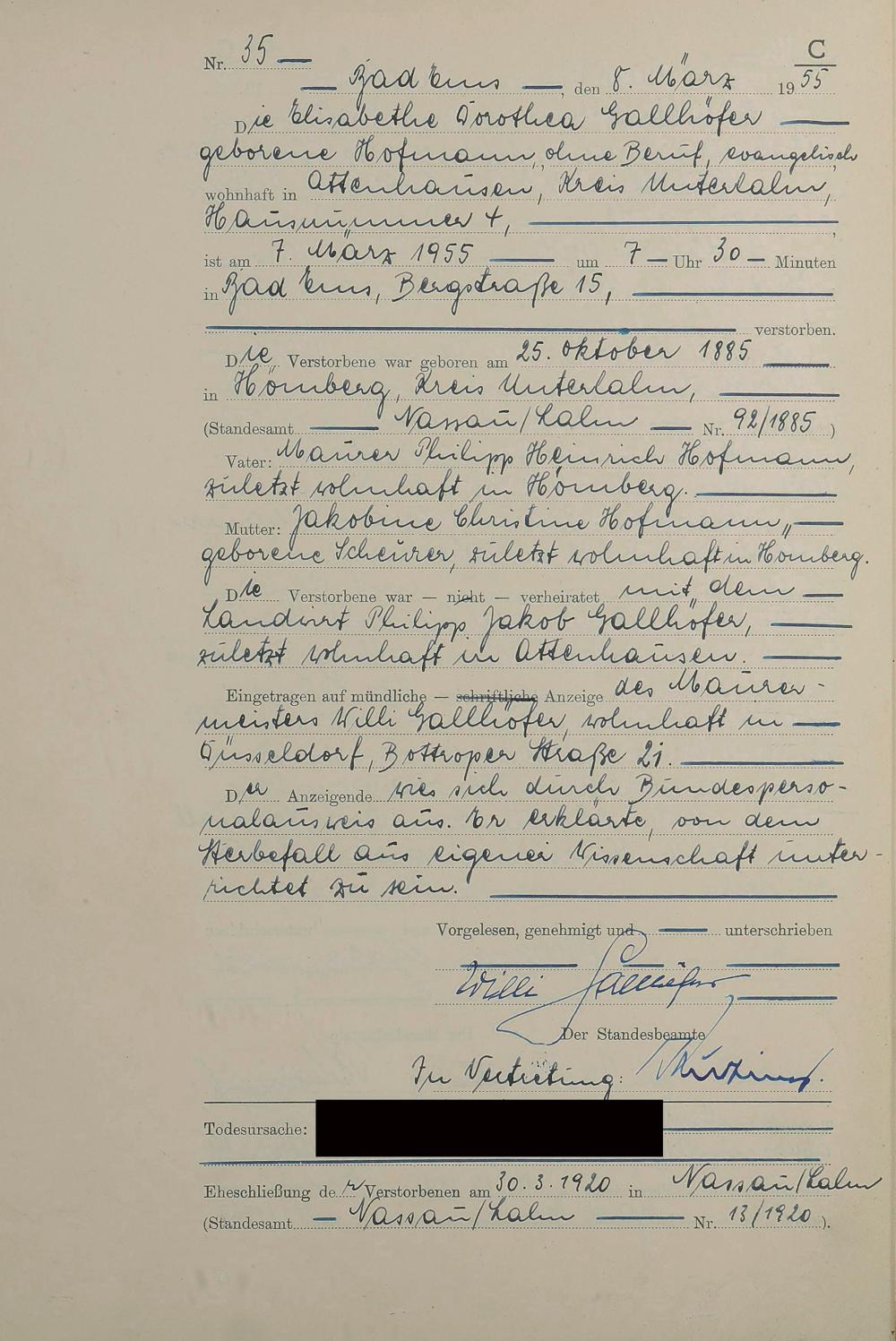 1531: Sterberegister 1955