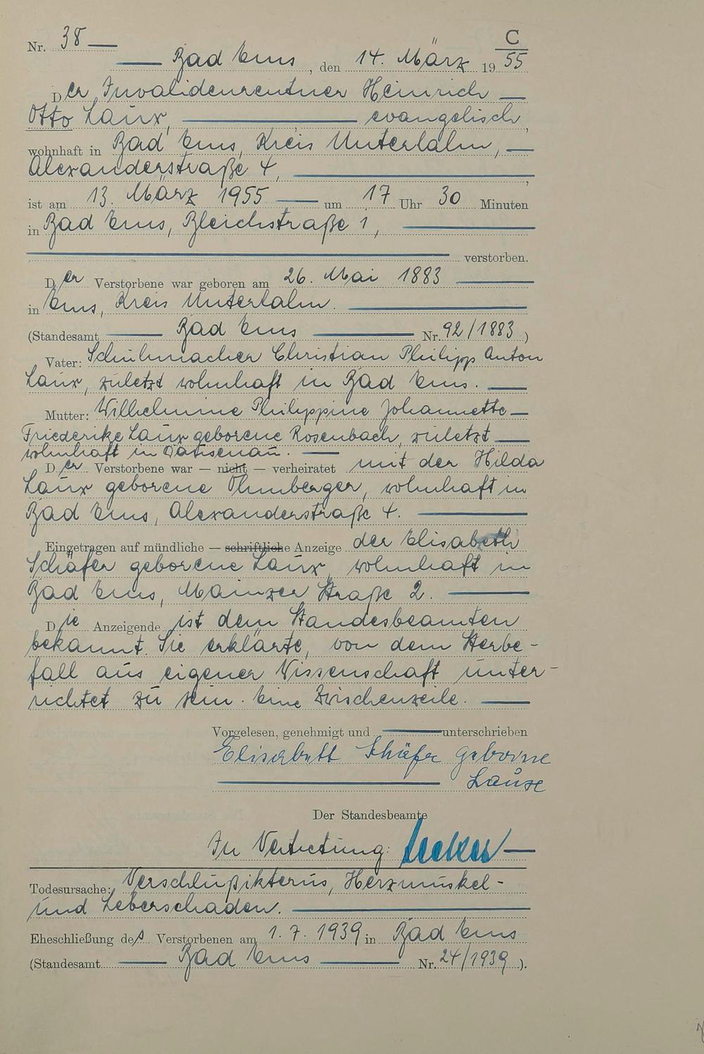 1531: Sterberegister 1955