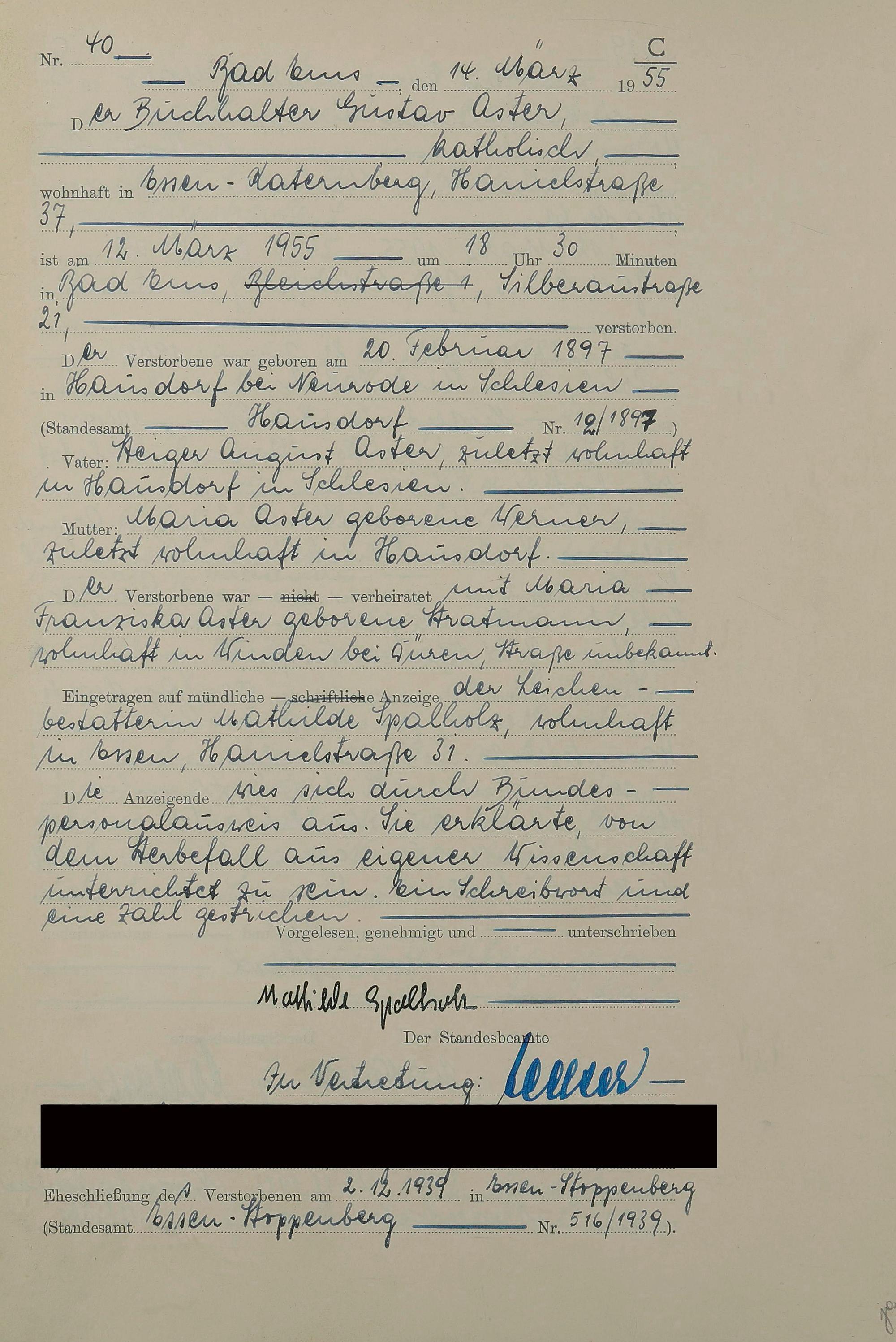 1531: Sterberegister 1955