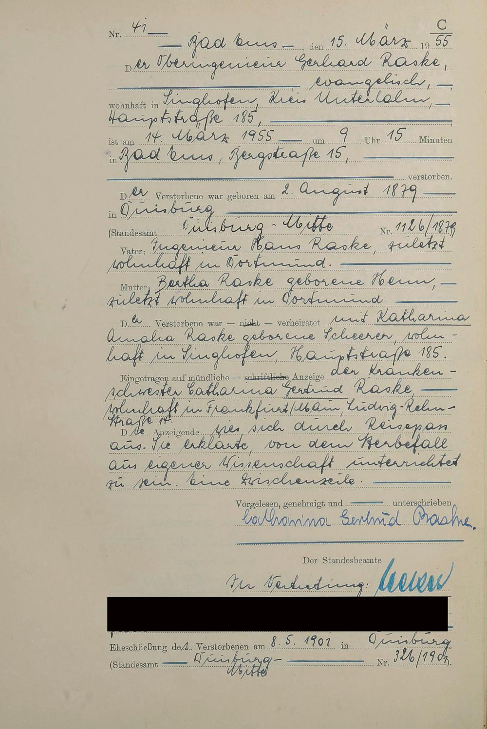 Sterberegister 1955