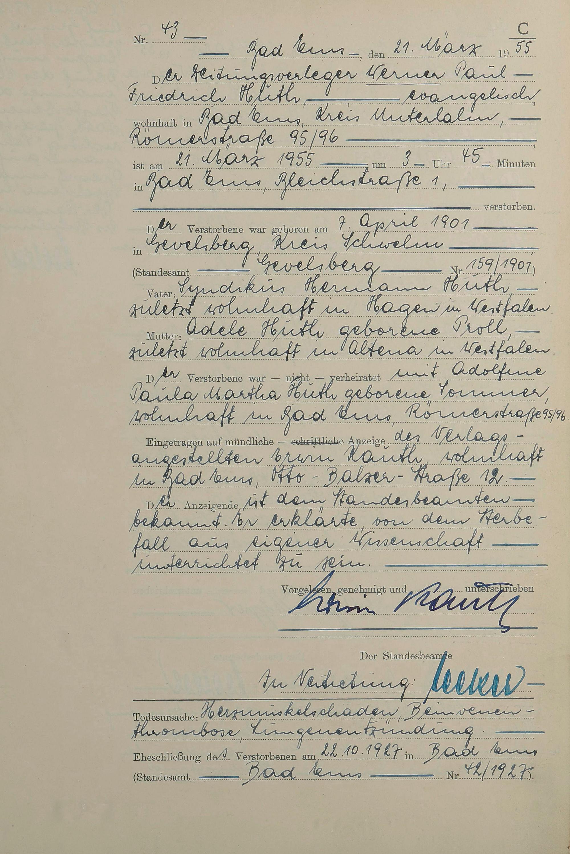Sterberegister 1955