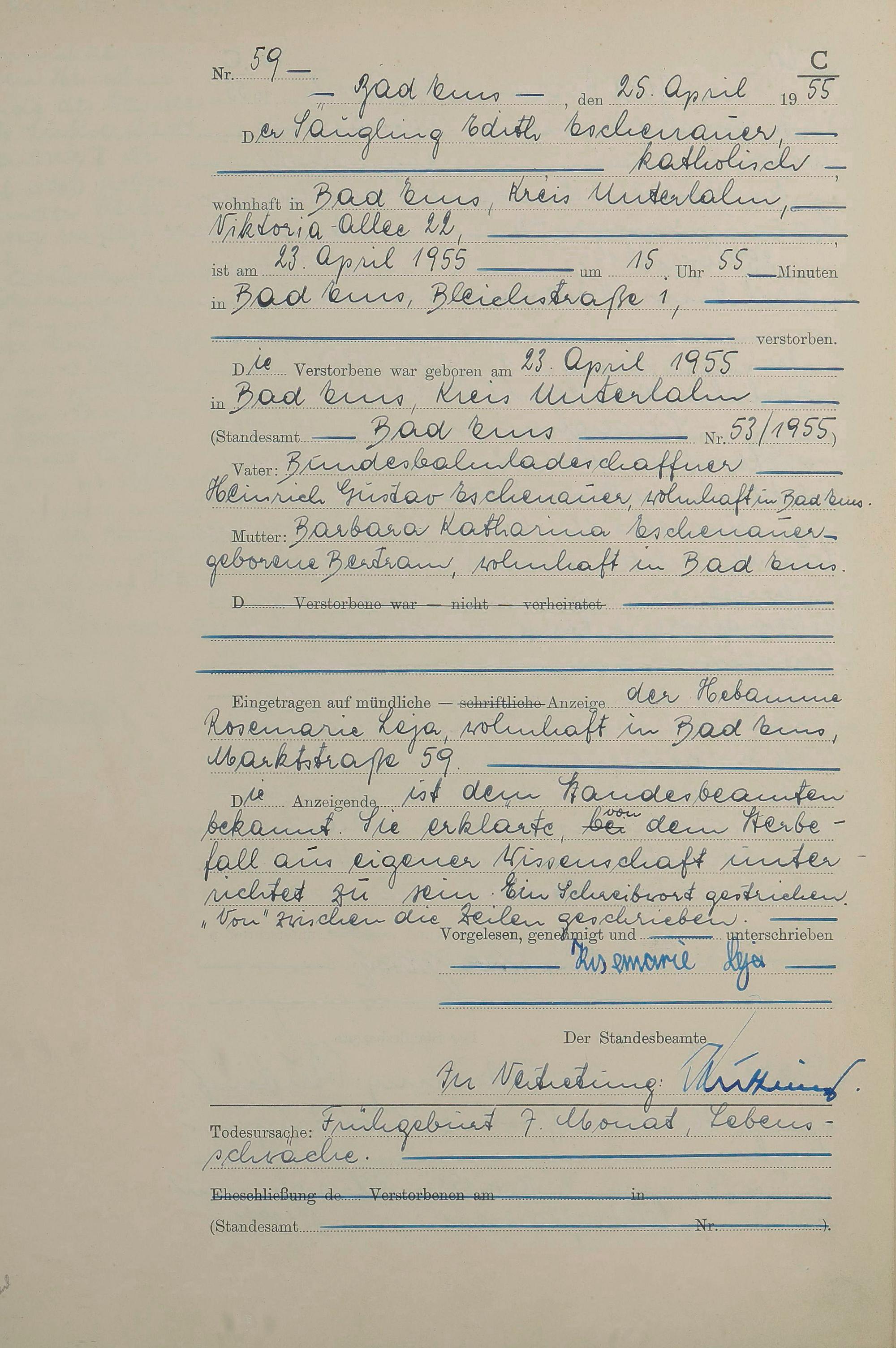 Sterberegister 1955