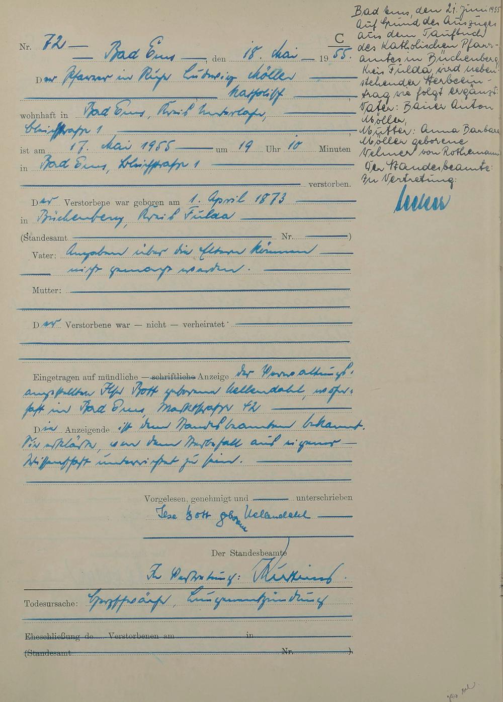 1531: Sterberegister 1955
