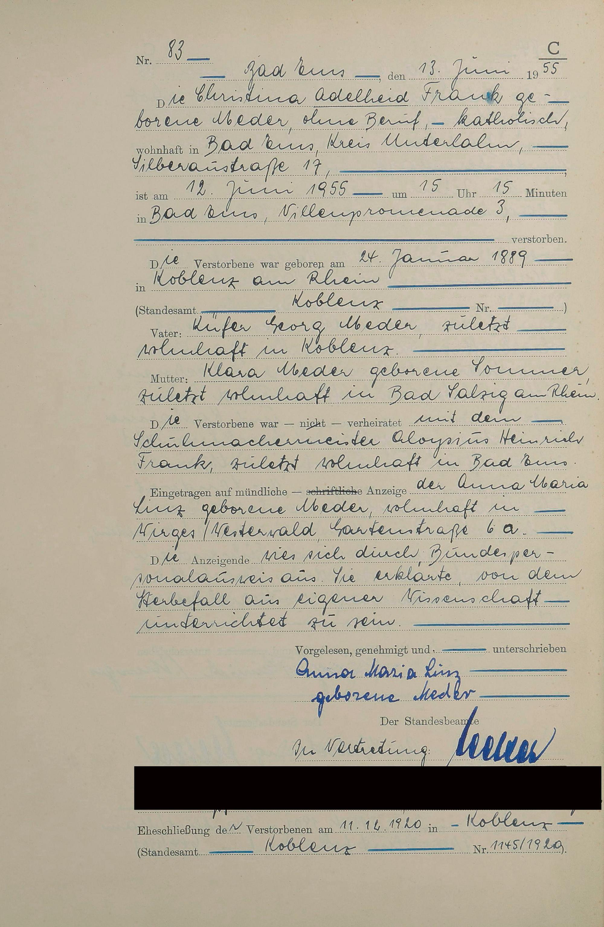 Sterberegister 1955