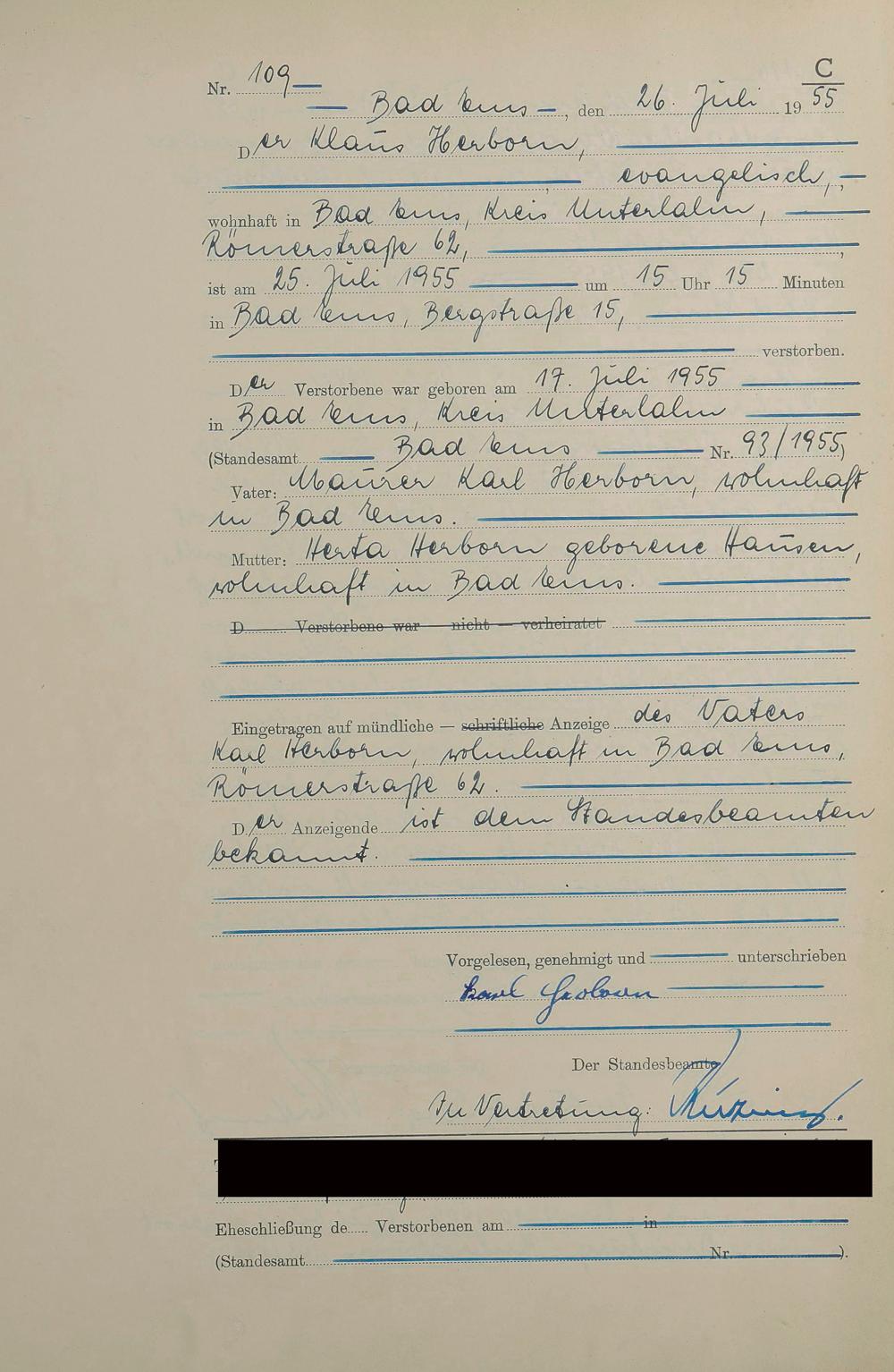 1531: Sterberegister 1955