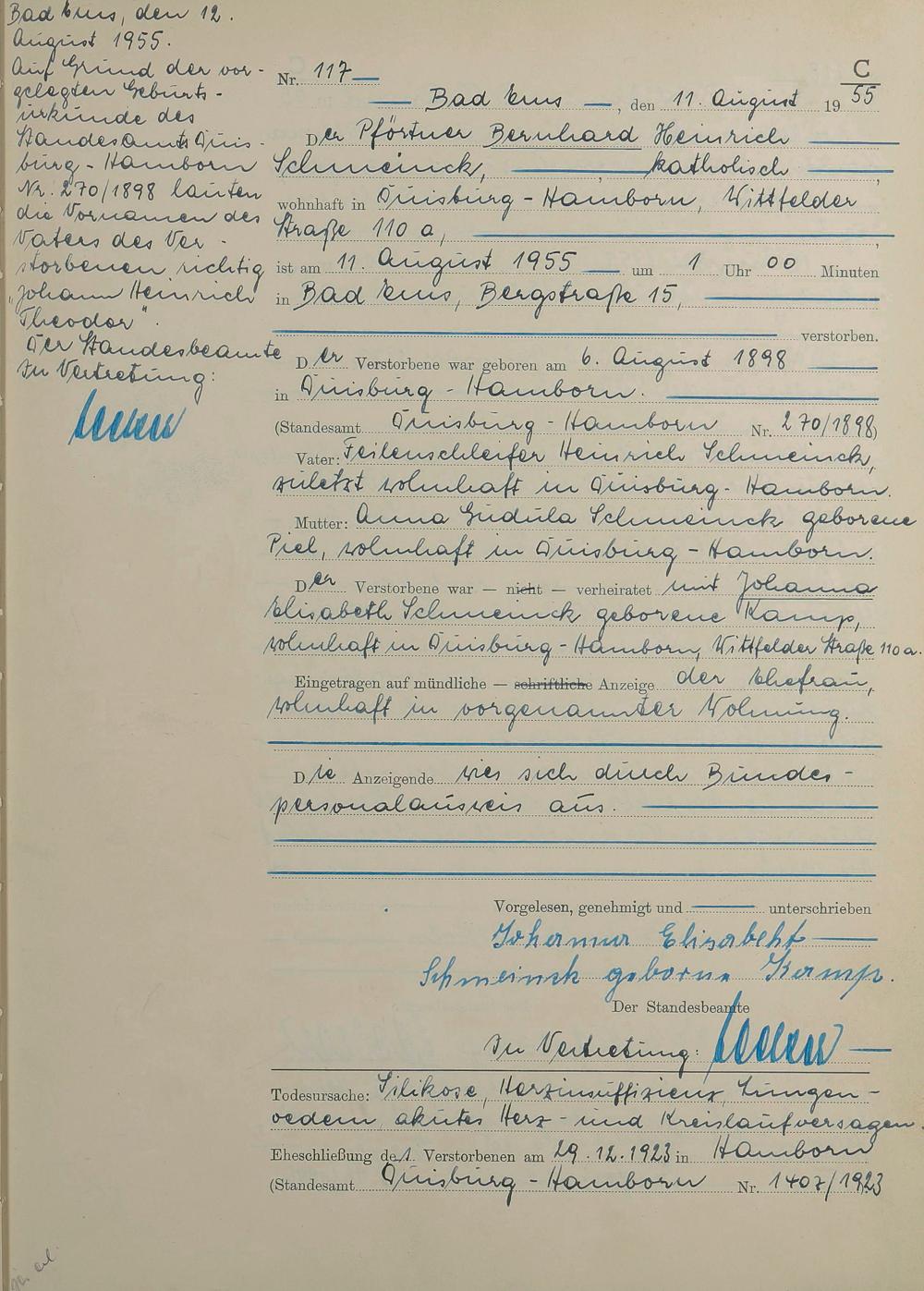 1531: Sterberegister 1955