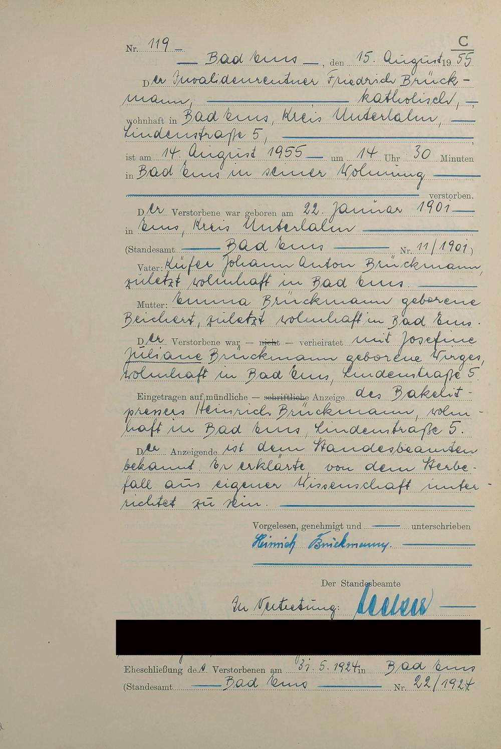 1531: Sterberegister 1955