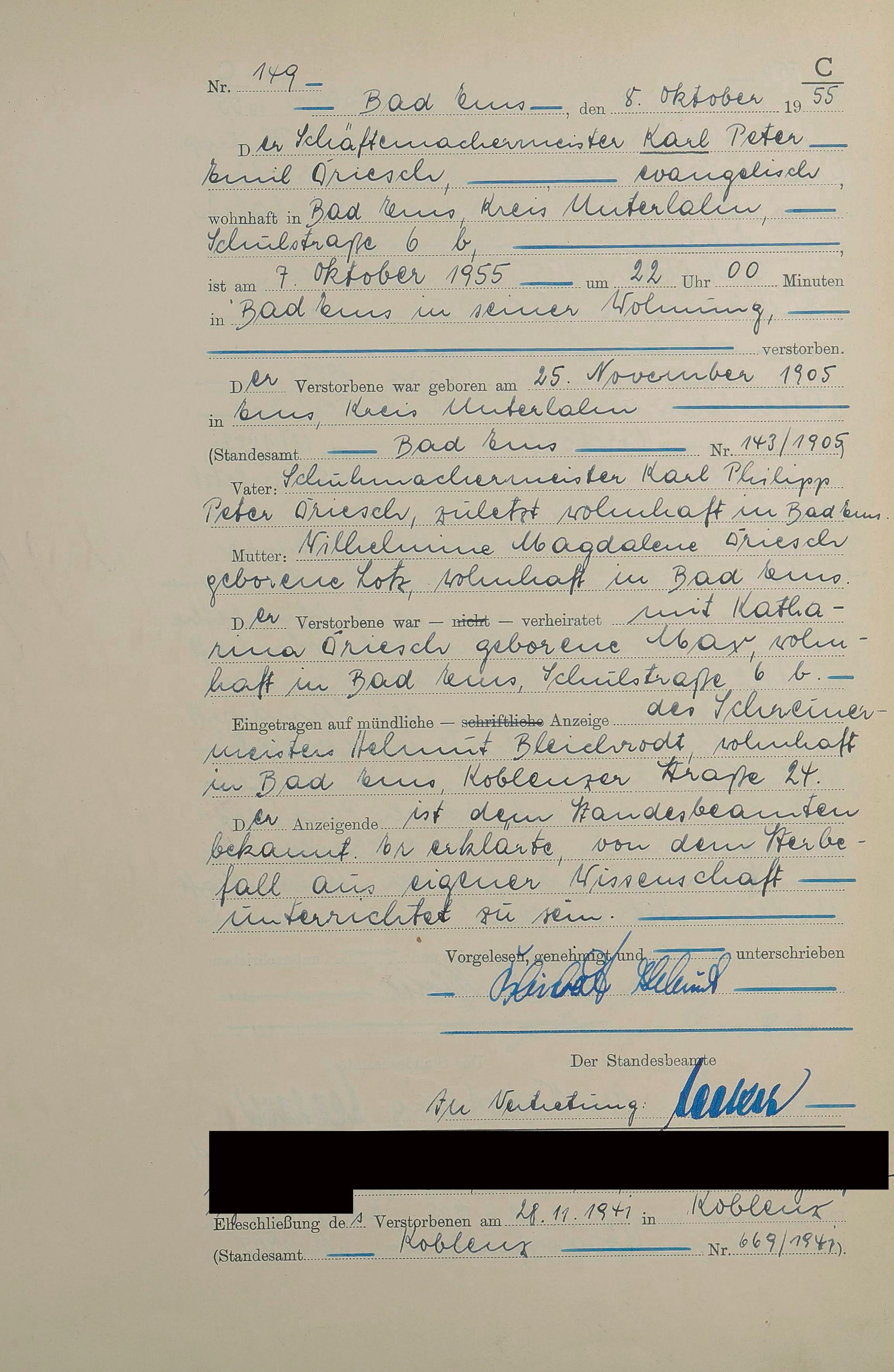 1531: Sterberegister 1955