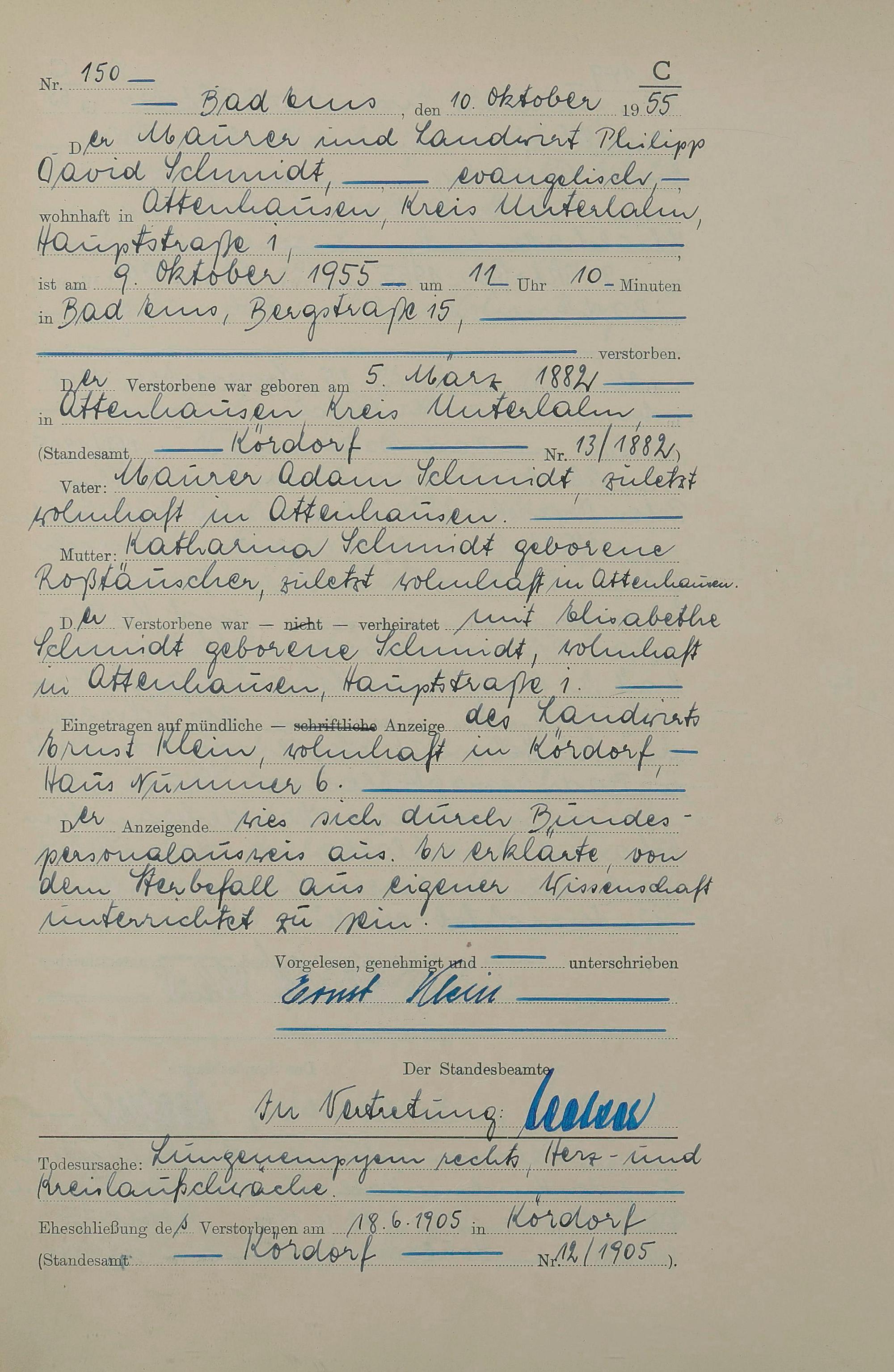 Sterberegister 1955
