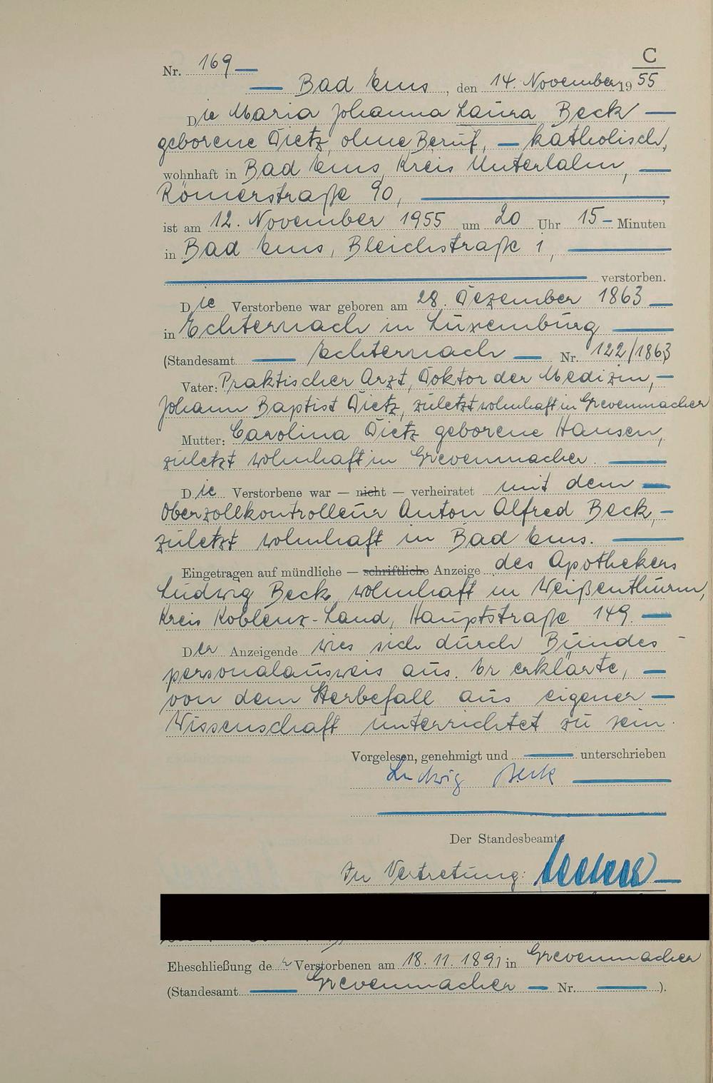 1531: Sterberegister 1955