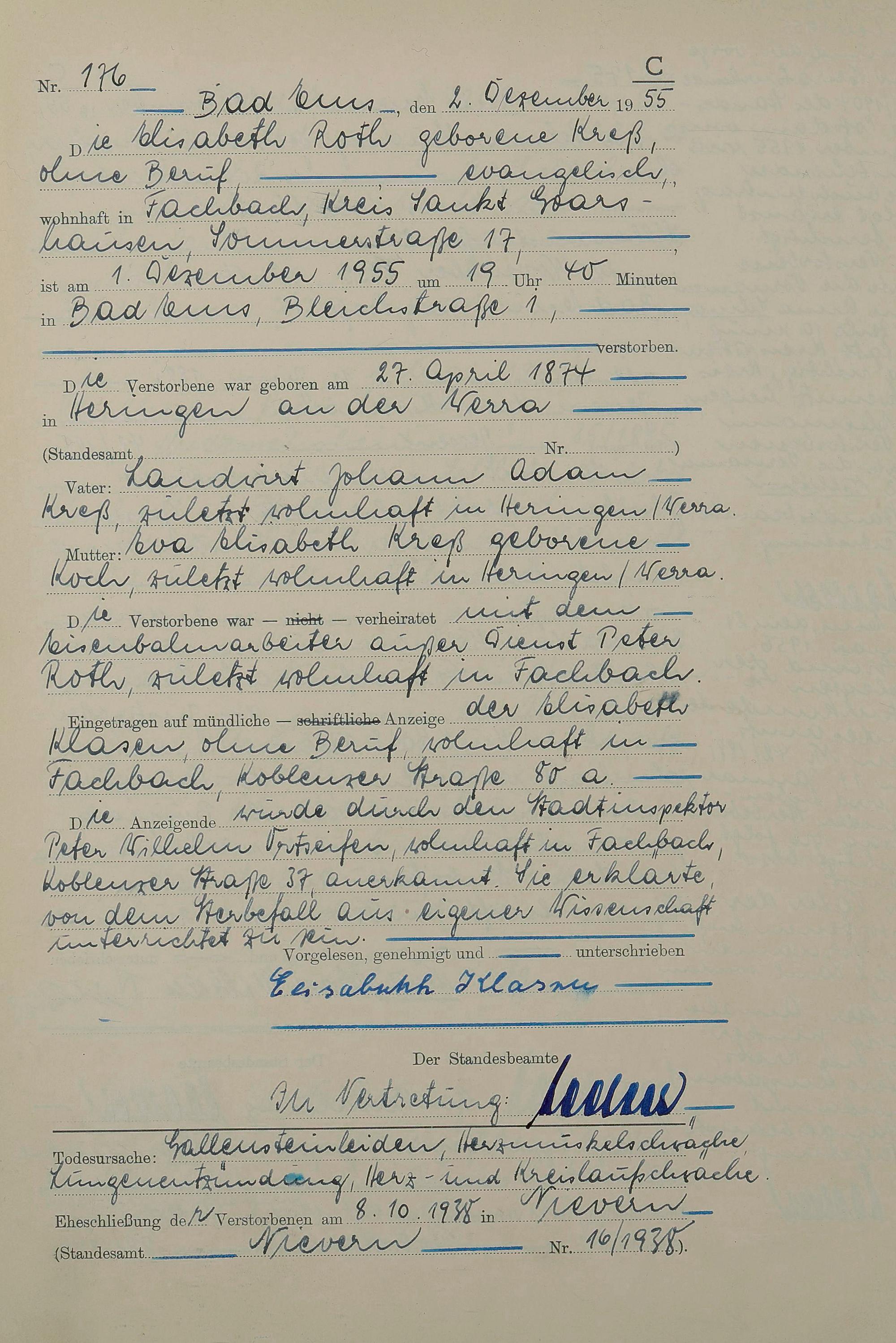 Sterberegister 1955