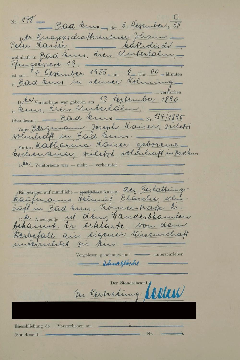 1531: Sterberegister 1955