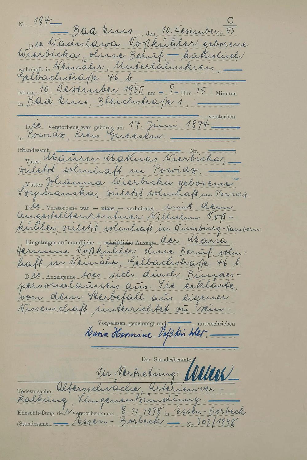 Sterberegister 1955