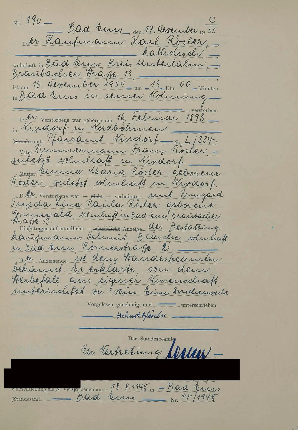 1531: Sterberegister 1955