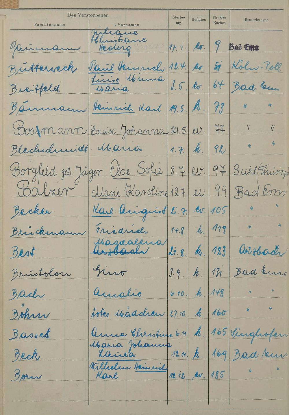 1531: Sterberegister 1955